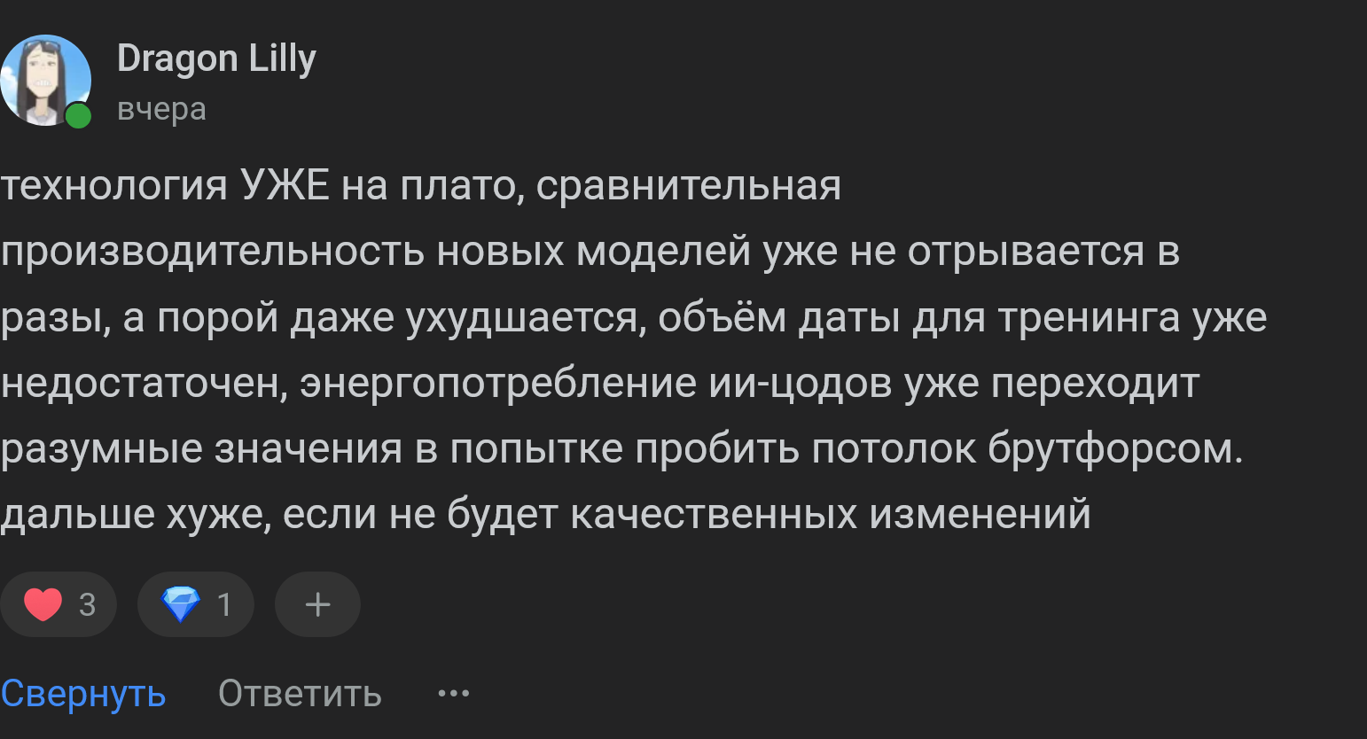 Сейчас ризонинг (хотя он и работает замечательно) – это на самом деле никакой не ризонинг. Рассуждения в LLM называются так чисто условно: на деле мы остаемся в абсолютно той же парадигме, просто модель теперь генерирует для ответа больше токенов.