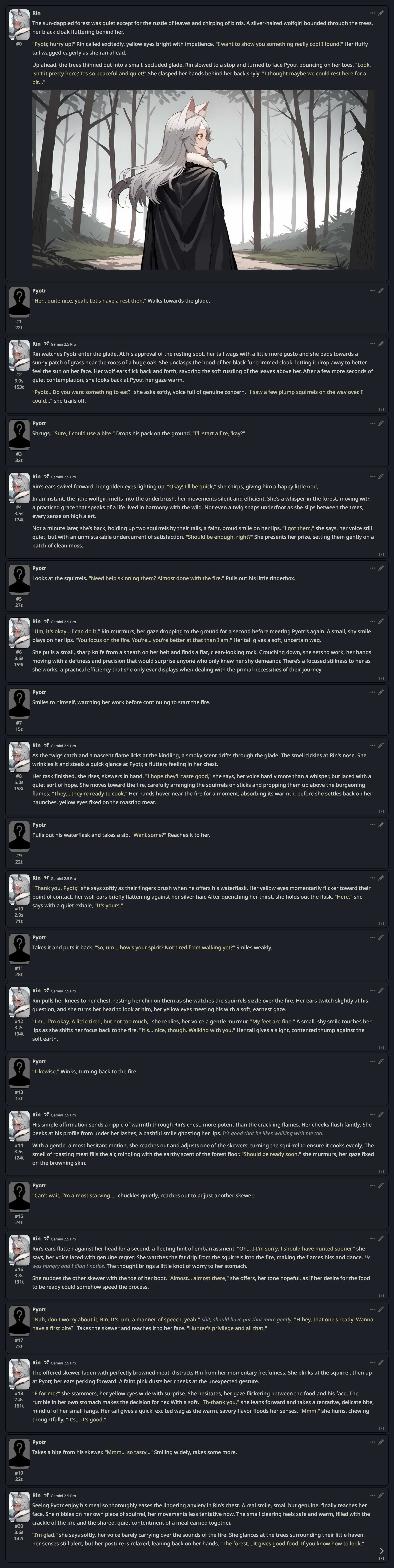 вообще я бы уже искал куда съебаться с гемини, осталось 2-3 месяца до выхода гемини 3, на ней будет невозможно рпшить из за сильного дроча на кодерство и бенчмаксинг, её просто нахуй мозги выжгут. как на гпт они надрачивают сетки "внутренними" инструкциями. там еще фильтр вместе с ней новый появится. размер кстати у неё уменьшат, будет похожая ситуация с гпт 5, чисто на ризонинг все средства будут направленны, и на оптмизацию скоростей. в общем, довольно печально дальше, не хотел говорить но приходится, потому что не вижу чего то хорошего на гемини дальше.