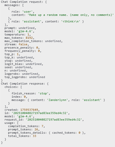 >>1374653>>1374646>>1374639 Вообще она вроде обучена определять, нужна думалка или нет. https://docs.z.ai/api-reference/llm/chat-completion#body-thinking-type >When enabled, GLM-4.5 will automatically determine whether to think 4.6 наверно тоже так же себя ведёт. Думалка у неё должна возвращаться в reasoning_content и быть видна в консоли, так что "не сразу отвечает" это скорее всего просто нагружены сервера и промпт-процессинг занимает сколько-то, а не отсутствие думалки. Какой смысл им её скрывать? Это локалка, веса доступны, кради не хочу.