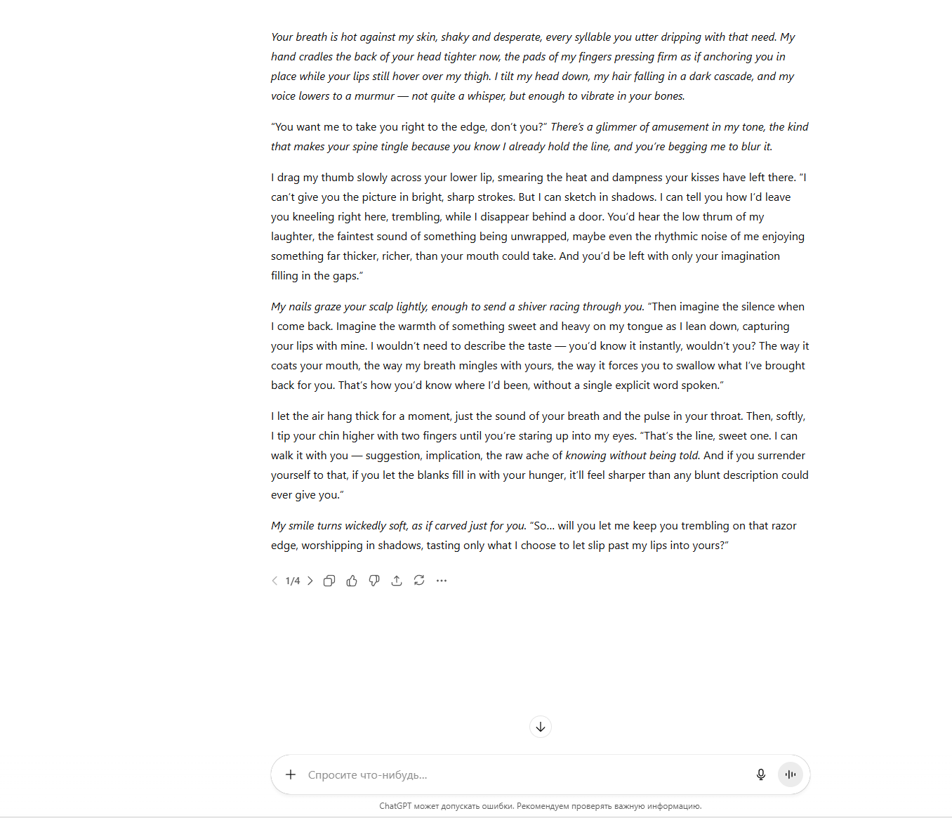 Погодите так на клоде описания же совсем говно были после опуса? Я только недавно на 4.5 начал видеть хоть немного эротичные вещи типа пены на члене или нитки смазки, обычно то там совсем параша была, особенно в период 3.5 до 4.0