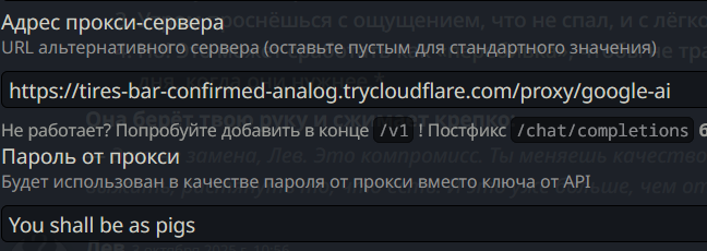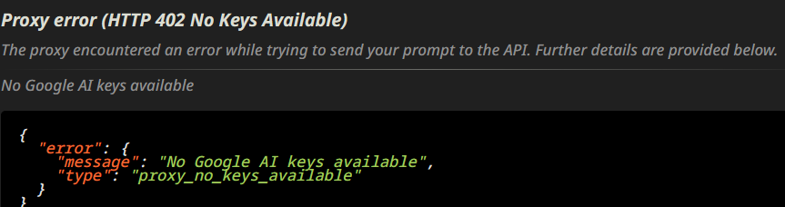 >The proxy encountered an error while trying to send your prompt Первый раз такую хуйню вижу, эт что еще за ошибка. Откуда она высралась? Конект показывает нормальный, зелёный.