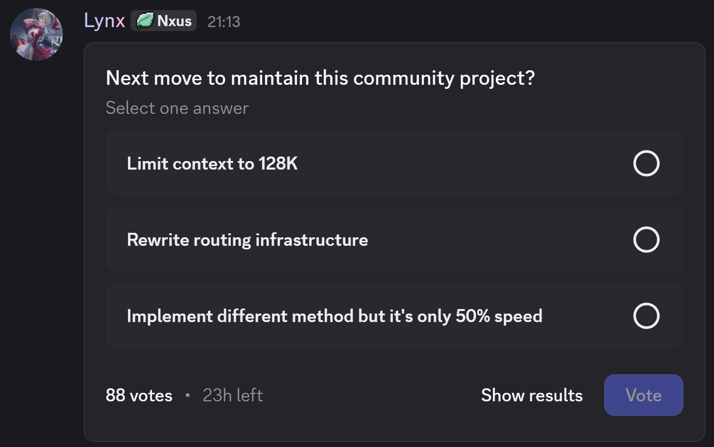 >>1375781 А можно ну хотябы 128к контекста на гемине поставить понюхаить?.. Все равно не местные аноны выжирают а те же яойщицы с китайцами сидящие на них же.