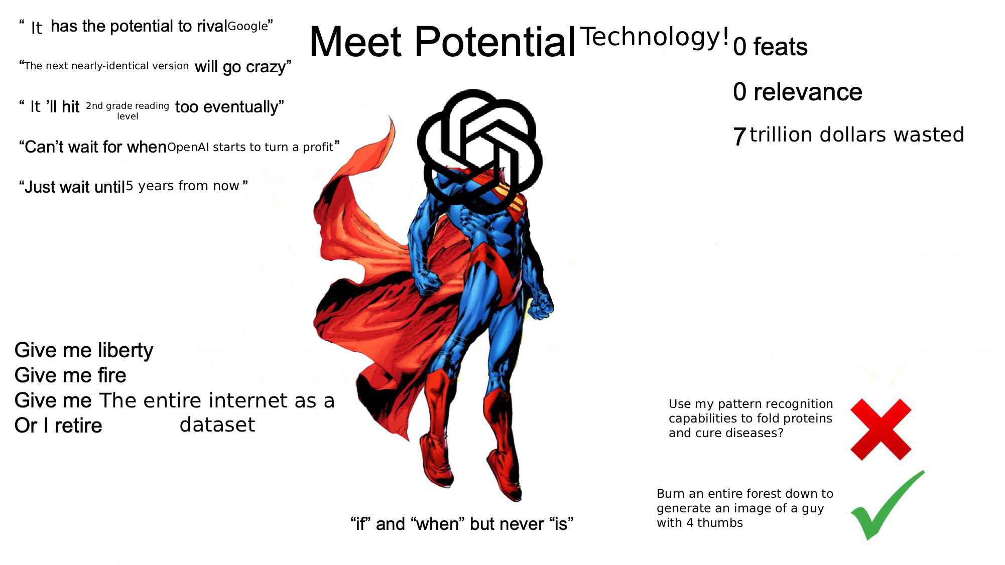 >>1375036 Генераторы пикч это инструмент, а тут все хотят буквально искусственный разум. Картинка тоже сама себя не генерит в один шаг, если там не уровень "тян пырит в камеру", что уже не знаю кого не заебало в 25.