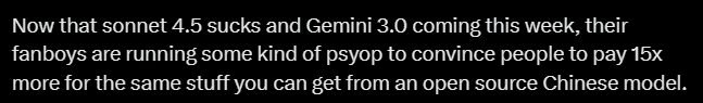 кто не понял, они хотят из гемини 3 сделать мелкую модель с большой думалкой, точно такую же как гпт-5, потому что эффективно в кодинге, и дешево в использовании. я поэтому вам и говорил изначально, не ждите ничего от гемини 3 хорошего, то же самое говорил про гпт-5