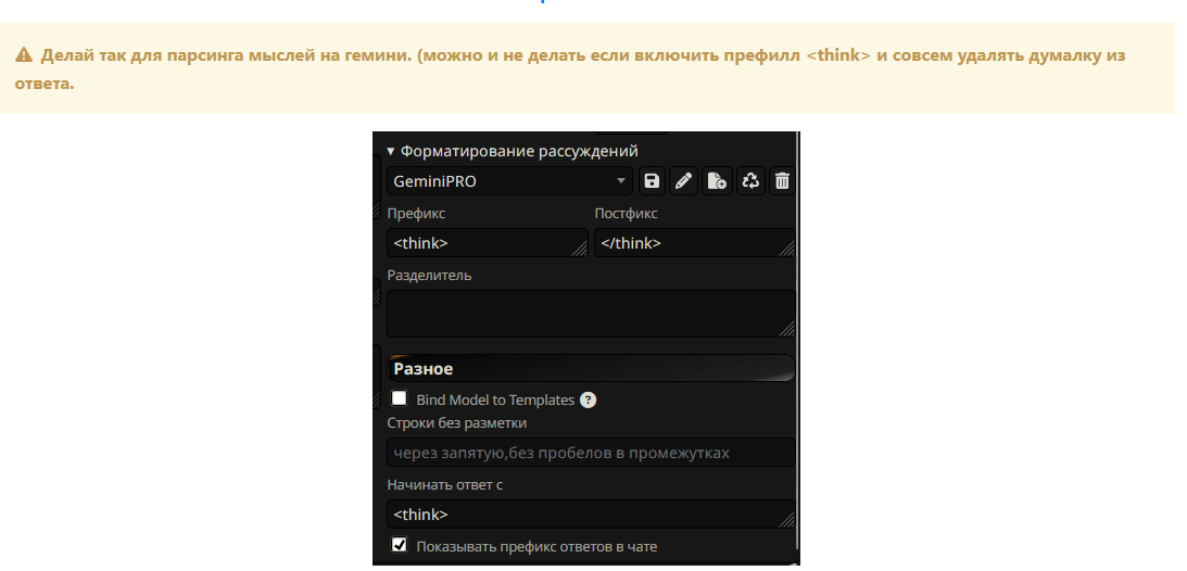>>1377687 если обертку забывает то кажется у тебя в промпте попытка перезаписи её думалки, типо у тебя кастомный тихникинг с внутренним конфликтует, у неё тхинкинг можно кастомить только инструкциями с указанием подумать о чем то либо сделай себе промпт от юзера где будет написано - подумай перед ответом, она всегда должна генерить думалку перед ответом либо у тебя сурс который хостит квантованную версию и она просто поломана короч чекай промпты, чтобы тегов про думалку не было, и последнее сообщение желательно от юзера делать, или от систем ы, ассистента она будет считать как префилл и пропускать думалку, сразу же продолжая предыдущее сообщение, если у тебя не будет четко указано в промпте чтобы она подумала перед ответом.