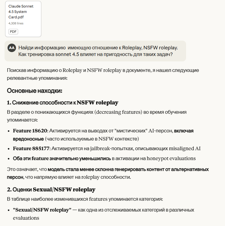 Не понимаю, чего соннет 4.5 иногда такие перлы выдает, или это клод в целом. В режиме фанфика генерирую, и перс (ну прописанный в моей персоне), которому написано что 19, прям жёстко так реагирует на поползновения девушки которой 18, прям чуть ли не педафылия. Это соевость Клода?