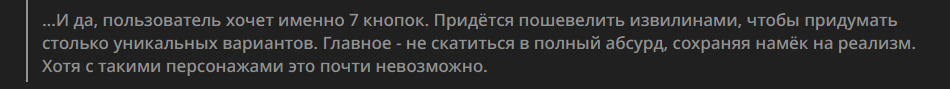 Еще по сухому безжопу. Заметил что сетка не хочет писать за второстепенных нпс когда напрямую к ним обращаешься, это вот стало недавно в новых рп, до этого норм было, сейчас их просто не прописывает, не с префиксами, не за автора, вообще никак, только если насильно заставлять, вписывая префикс и нажимая продолжить. Почему так? Что можно сделать?