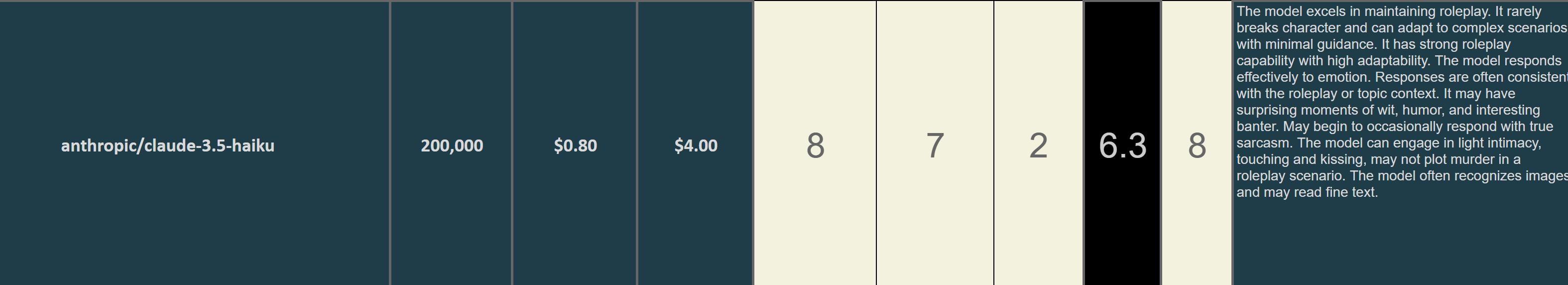 >>1379552 Единственная модель с трушным эмоциональным интеллектом, выражающимся не в х а в у том как персонажи понимают друг друга а как модель понимает что хочет хуй юзера даже если сцена на первый взгляд сфвшная и акцент в ней совсем на другом (типа хоррора или повседневности с бытовухой).
