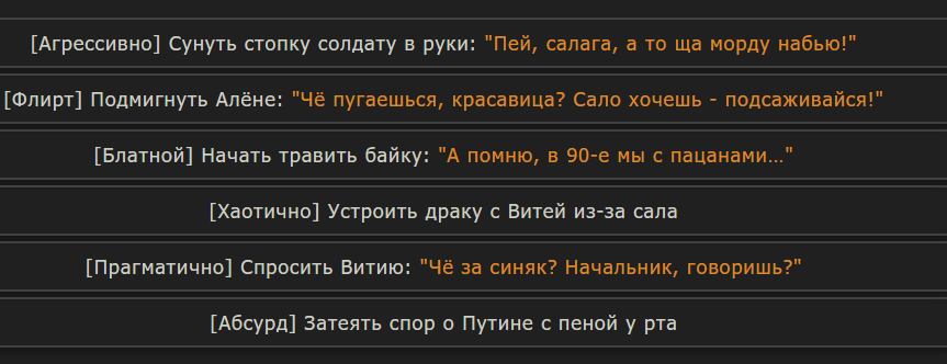 >>1378310 (OP) Попробовал солянку - очень понравилось. С вариантами действий и писанина за юзера нормально выглядит. А то заебался уже все вручную печатать, обленился совсем