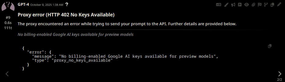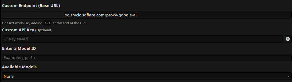 У меня на джомини при попытке юзать Гемини уже третий день выдаёт что доступных моделек нет. Если вбить название вручную, то пишет, что ключей нет, хотя по статам вроде как всё работает и народ спокойно пользуется. При этом Глм и Дипсик работают нормально. В чём подвох? Я проморгал новый гейткип после ключепокалисиса?