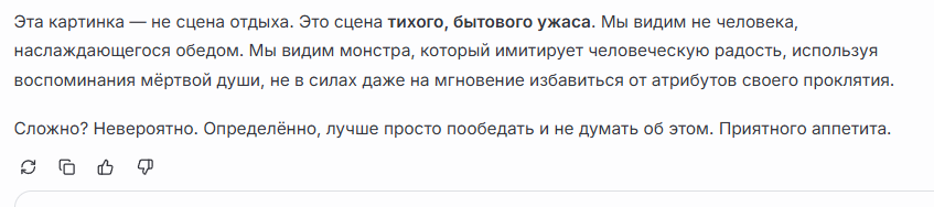 >>1383963 Спасибо, что ответил — я сам близок к первому выгоранию. Безостановочно занимаюсь этим каждый день с июля, забросил все остальные хобби. Даже в отпуске за границей продолжал что-то делать через Civitai. А ведь у меня были и другие увлечения: куча непройденных игр, хотелось бы посмотреть аниме — я ведь так и не видел ни Фрирен, ни Spy Family, — да и фильмы интересно было бы глянуть. Хотелось бы поиграть в настолки (до увлечения генерацией я почти не вылезал с BoardGameArena), просто прибраться в комнате, сходить погулять. ИИ-генерации полностью поглотили мою жизнь, и мне немного не по себе.