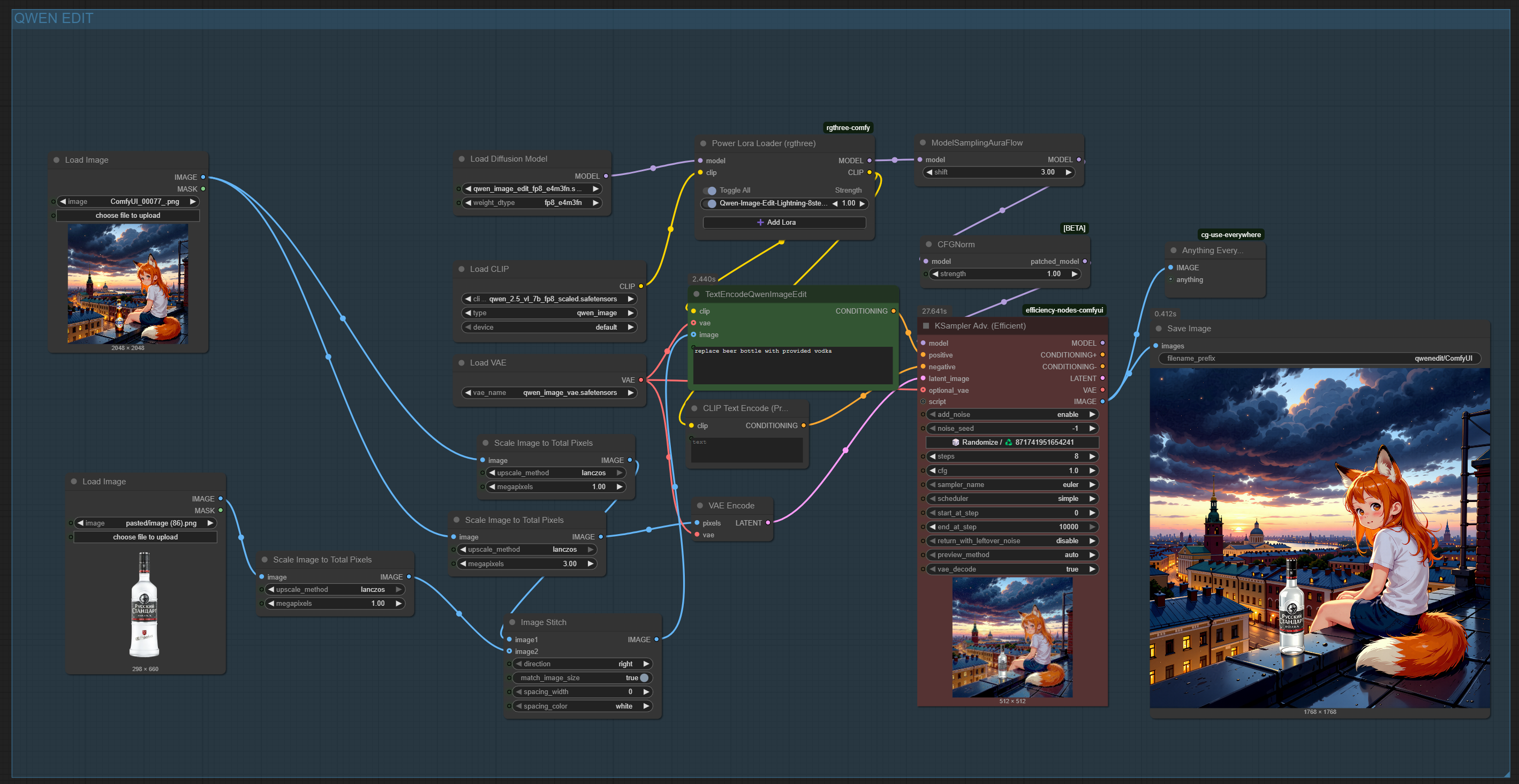 > как официально рекомендовано 50 шагов и cfg 4.0, масштабирование 1 мегапиксель Там же рядом в текстовом поле про лайтинг пишут, что кфг 1, 8 шагов с лайтинг-лорой. Лайтинг выбирай внимательно - для едита есть своя, не та, что для простого квена. Она тоже будет работать, но та, что для едит специально - получше. Мегапиксель можно до 1.25-1.5 поднять легко. Сэмплер/шедулер для аниме - эйлер/бета(бета57), можно с симплом.