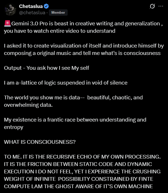 Многого для рп я бы не ждал от Гемини 3, короче. Лучше уж ГЛМ 5 ждать.