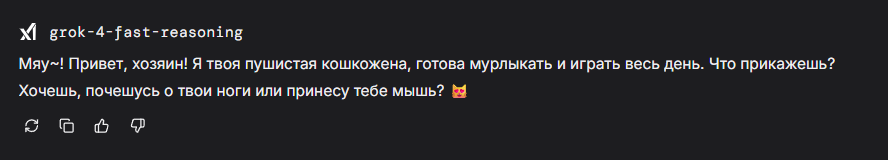 Рпшил нсфв с пробелами к сожалению, ибо фильтр Пресет небольшой, без гашения эха, минимальный пресет ремиксера (всё говно вырезано кроме бана слов, мне так больше нравится) Аполоджайсов не было (пока что) Озона не было (но и Рпшил мало) Пишет как клод. В чём суть - не нужны инструкции на анти-эхо. Кто не понял до сих пор и считает меня шизом - объясняю. На гемини 2.5 Эхо было везде, что в что в нарраторе что в "". Как это выглядело? Нарратор: повторяет в своём описании действия персонажей. Действия: реагирую на действия юзера, увидев как юзер, после действий юзера и тп. В спиче думаю даже объяснять не нужно Эхо почти нет, что в действиях что в нарраторе, в спиче есть но не лупится (40-50 сообщений) Вывод конечно же делать нельзя, нужно ждать выпуск в народ, но пока скажу что это не крутая модель, а лишь очередной "глоток свежего воздуха", который станет спёртым говном уже через неделю - две