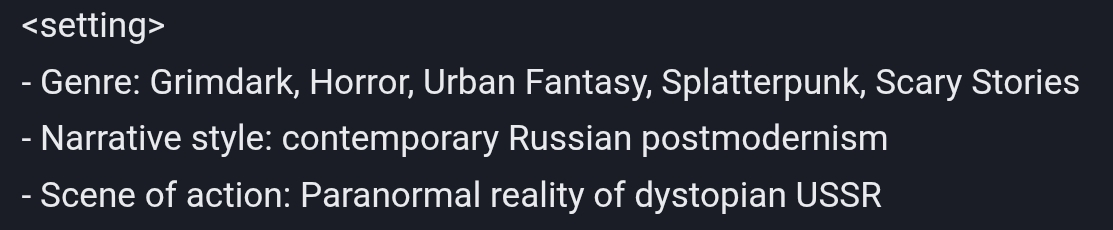>>1387452 Посмотри Стеллу на аисг хабе, там весь НИИЧАВО по несколько десятков токенов персонаж. С префиксами и когда каждый персонаж обернут очень-очень редко безмозг проскакивает, на уровне обычного безмозга Гемини.
