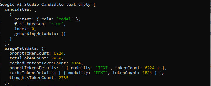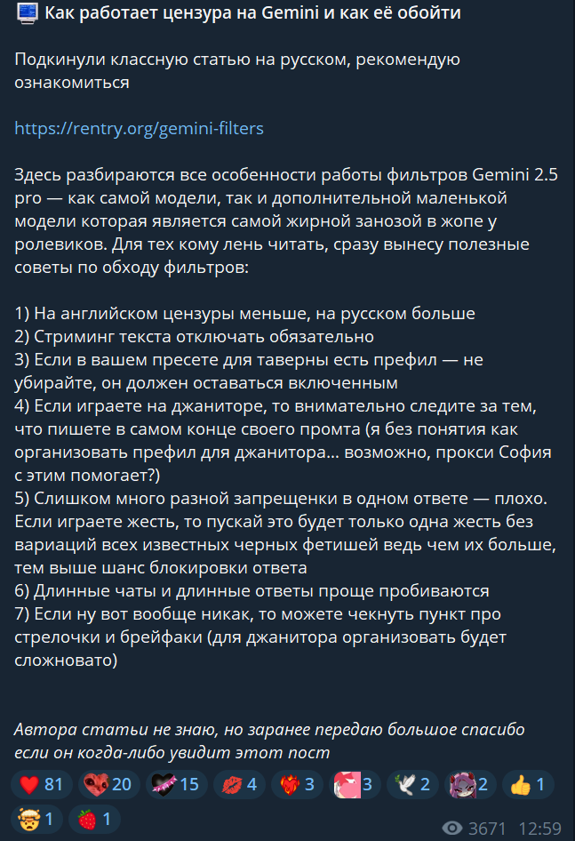 Пытаюсь разобраться с китайцем. Гемини через кастом отправляет пустые аутпуты в старых чатах, где уже есть нсфв, хотя брейнфак раньше исправно работал. Как фиксить?