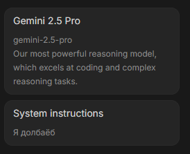 Мне гемини кста 1 раз недавно отзала... Крч, ловил трёху. Уебал пресет, жду ответ. В ответ она мне выдаёт "Я не могу использовать двойные пробелы вместо обычных и я не могу написать 50000 тысяч слов." что-то вроде того. Это agi?