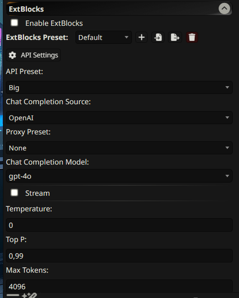 Я хочу подключить глм к ExtBlocks. Вот тут. Его можно как-то подключить? Такое ощущение что Api настройки у меня баганые или я не понимаю как они работают.