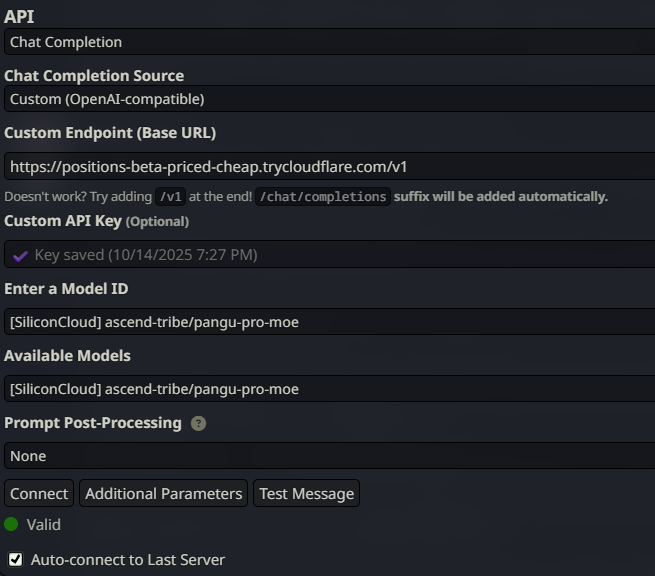 >>1387327 Анон пару тредов назад ссылку кидал, тот же интерфейс что и с анонвской прокси где вертекс есть, у них ток 9 моделей и хуй к таверне присобачишь но клод 4.5 робит, в интернет ходит даже ищёт че скажешь, могу ссылку дать если мочер не потрёт либо сами ищите кому надо, нужен минимум месячный акк гитхаба