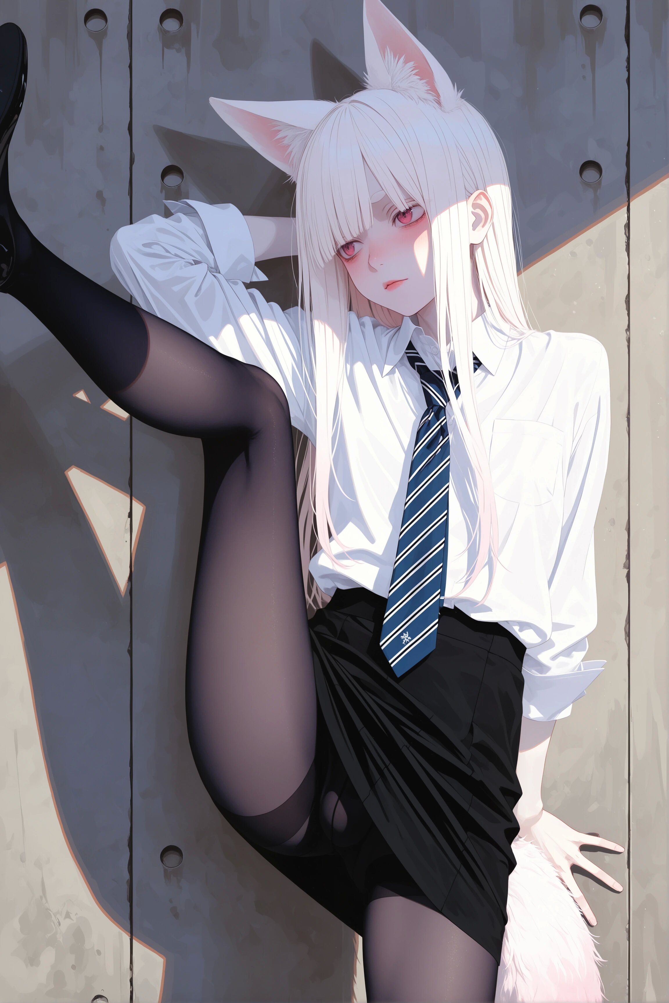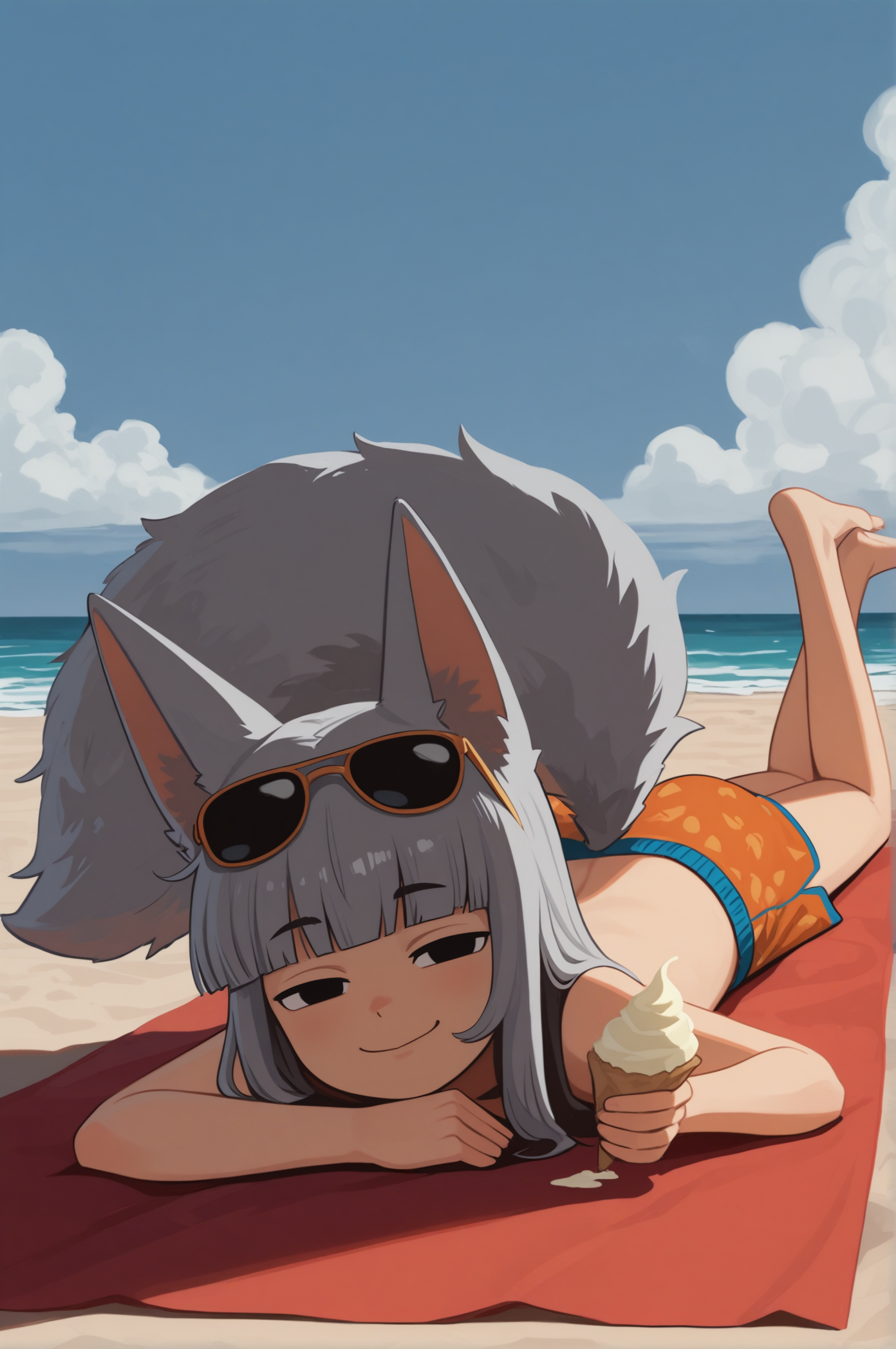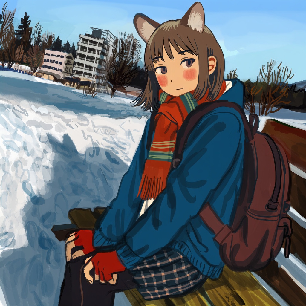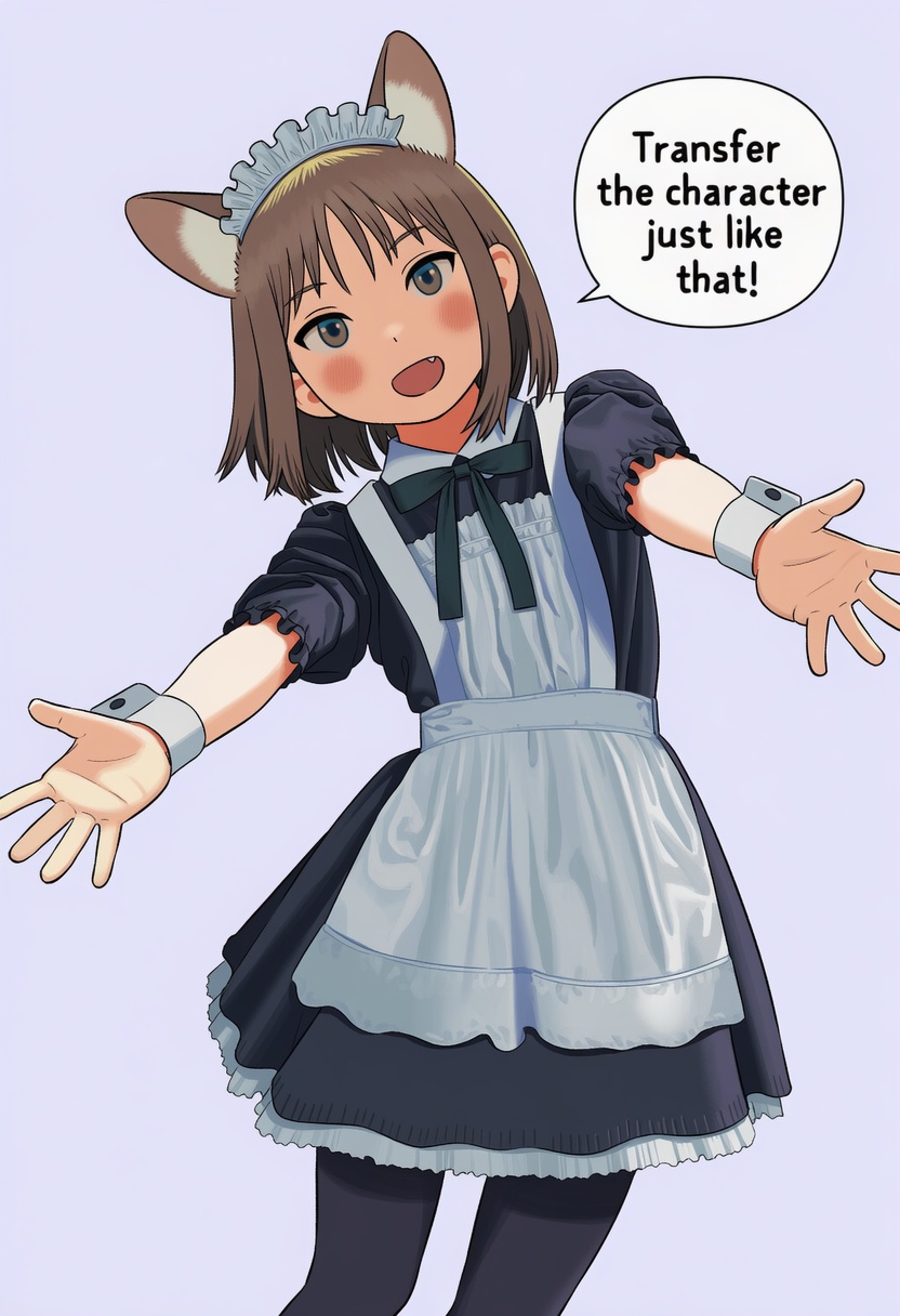 Собственно в качестве демонстрации - вон, взял картинку с кошкой выше по треду, вырезал персонажа, вставил как character reference. Буквально первые роллы с разными художниками и нарядами.