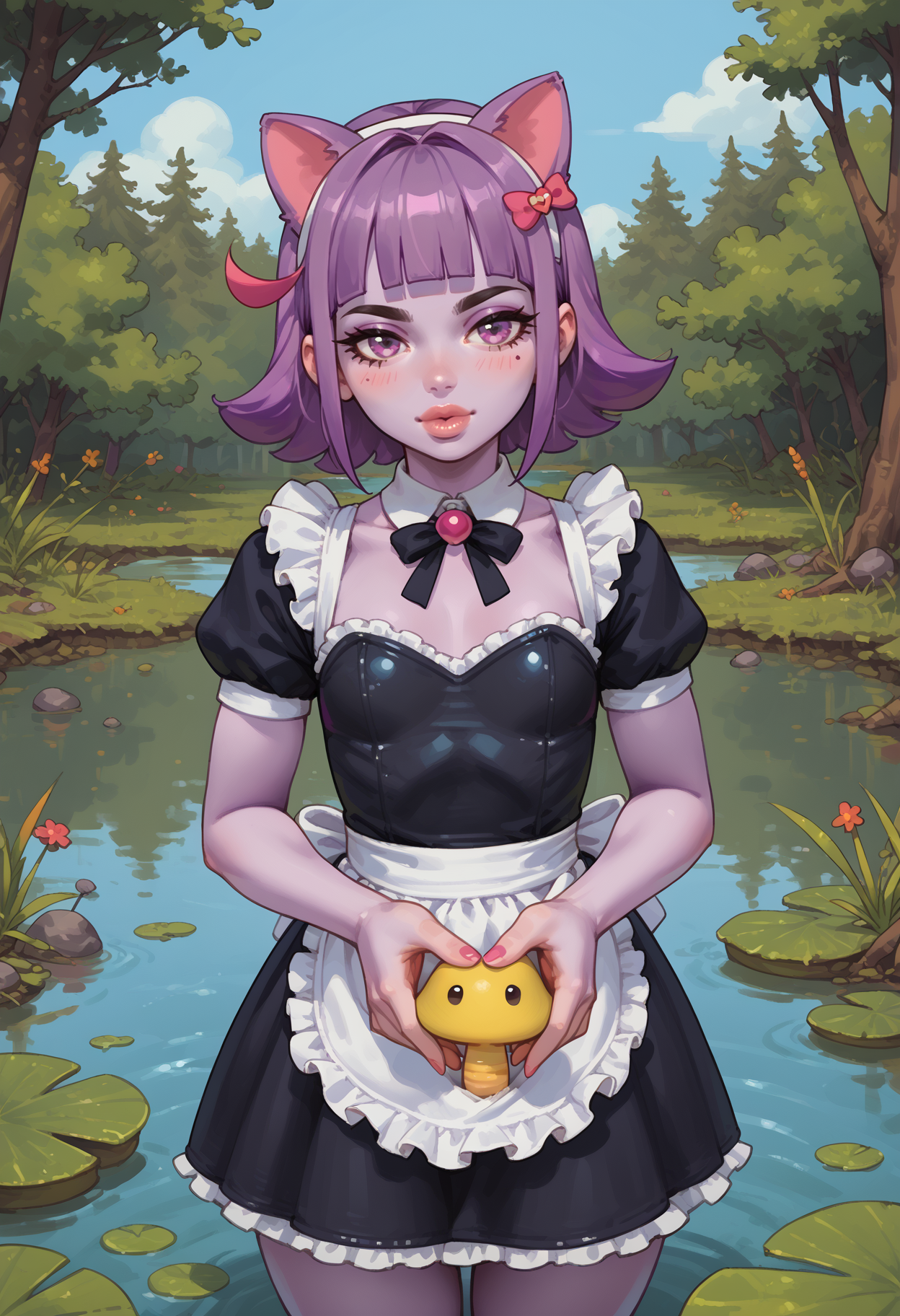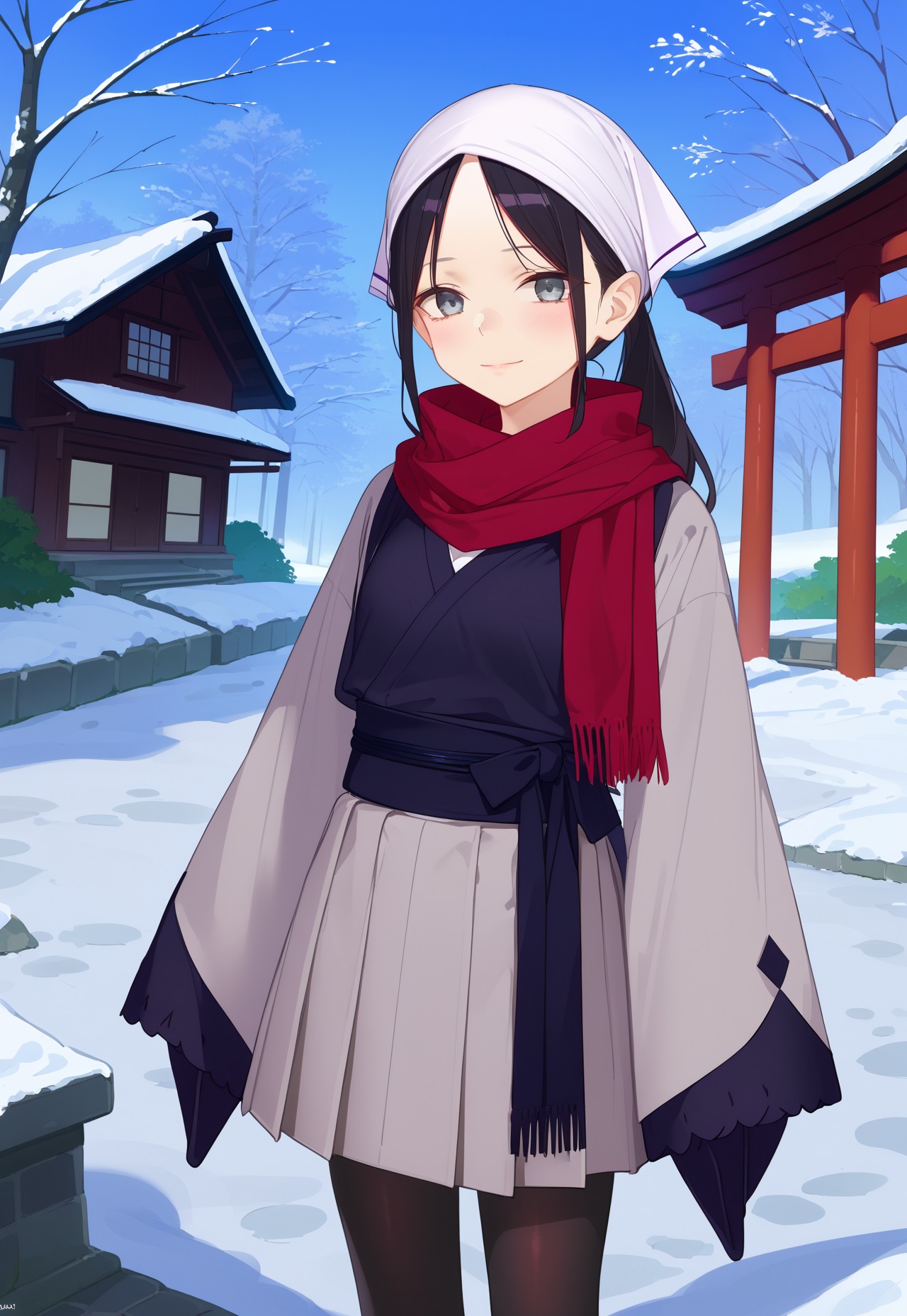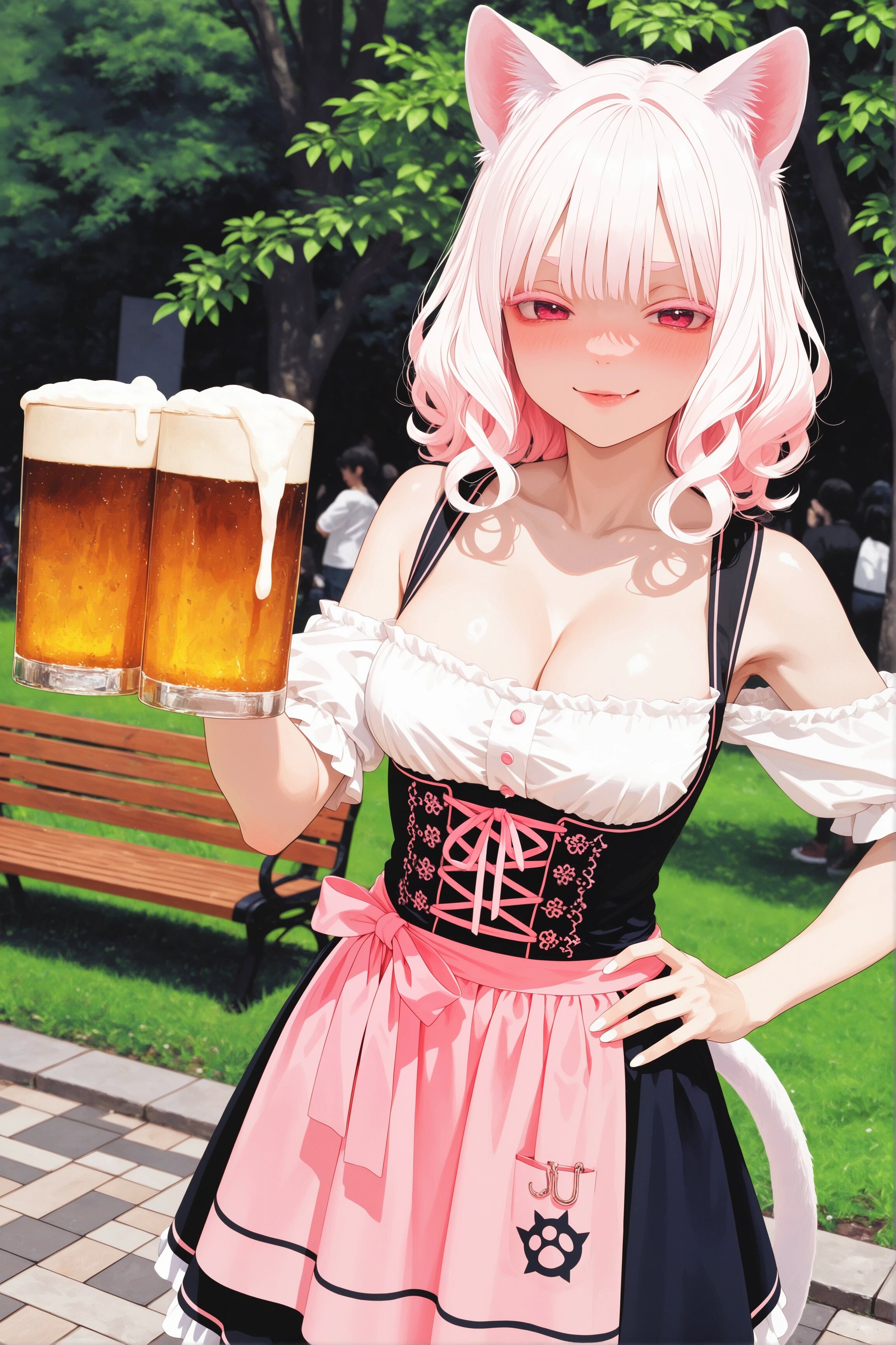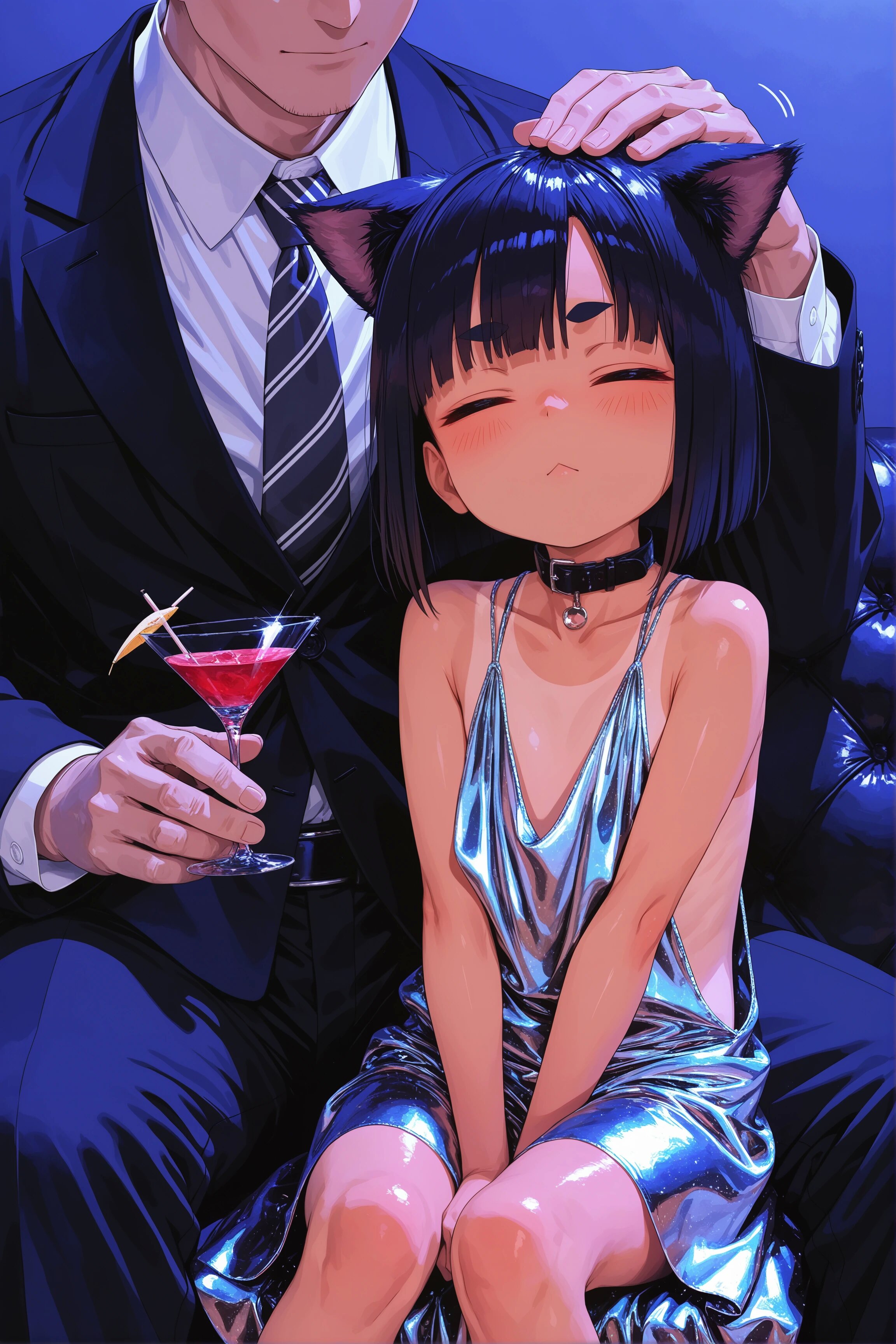 Собственно в качестве демонстрации - вон, взял картинку с кошкой выше по треду, вырезал персонажа, вставил как character reference. Буквально первые роллы с разными художниками и нарядами.