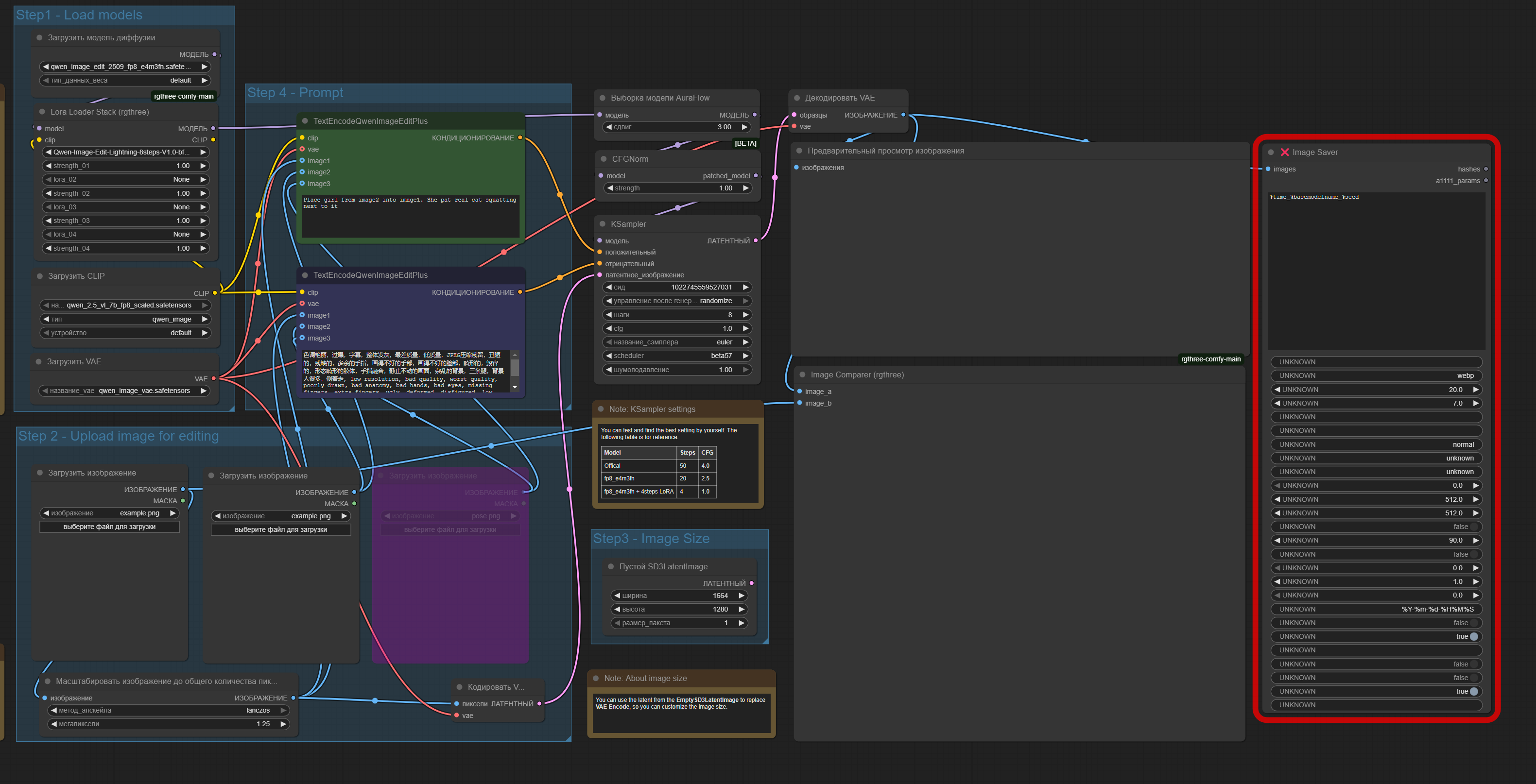 >>1399767 >до квена или нано бананы Я использую qwen image edit. Но не для основной генерации, а чтобы избежать тренировки лор на персонажей и стиль. Тупо переношу стиль и персонажа с картинок, он в этом довольно неплох. Исходные картинки и апскейл хочу в НубАи делать. Напрямую в больших моделях генерить конечно же не буду, мне важен стиль, а они аниме без лор не умеют. А вкатываться в обучение лор сейчас смысла особого не вижу, раз уж qwen image edit способен выдавать результаты не намного хуже и притом намного проще.