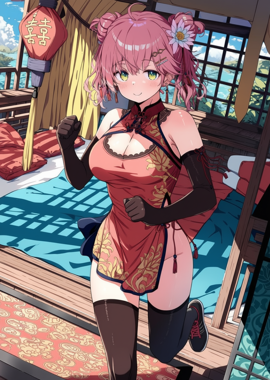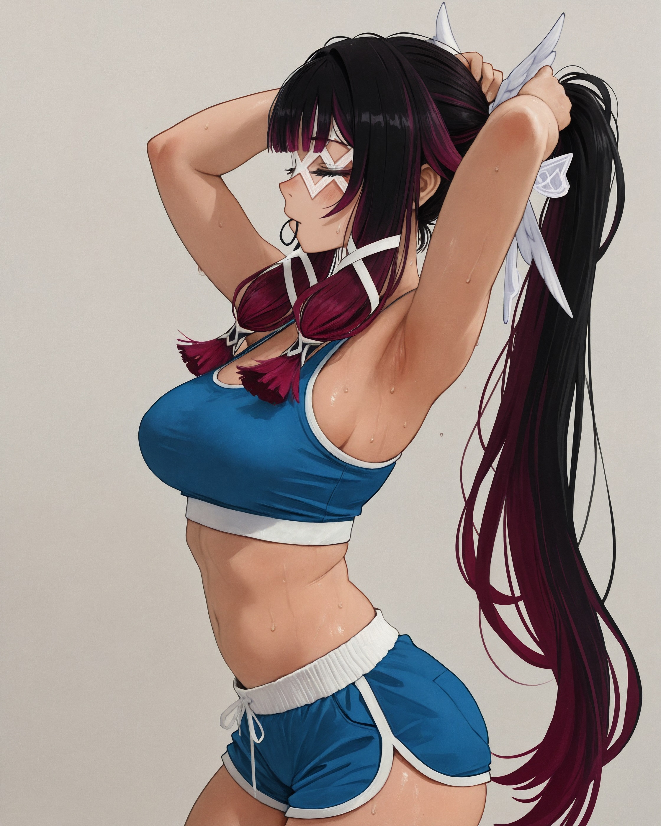 (На качество картинки не обращайте особо внимание, там оч старая лора от очень старого чекпоинта вмешана, она почему-то с лоустепом очень плохо дружит, удивлен что вообще всё не сломала)