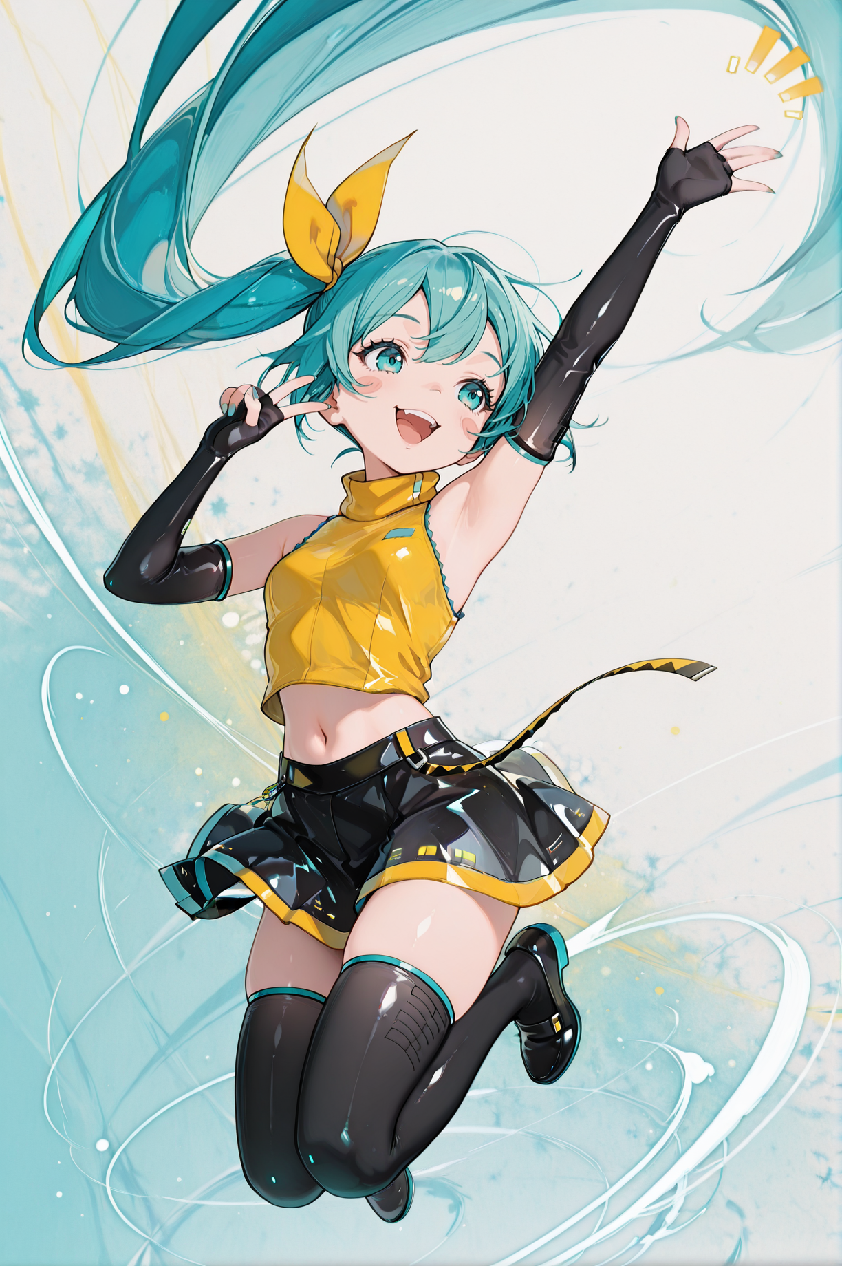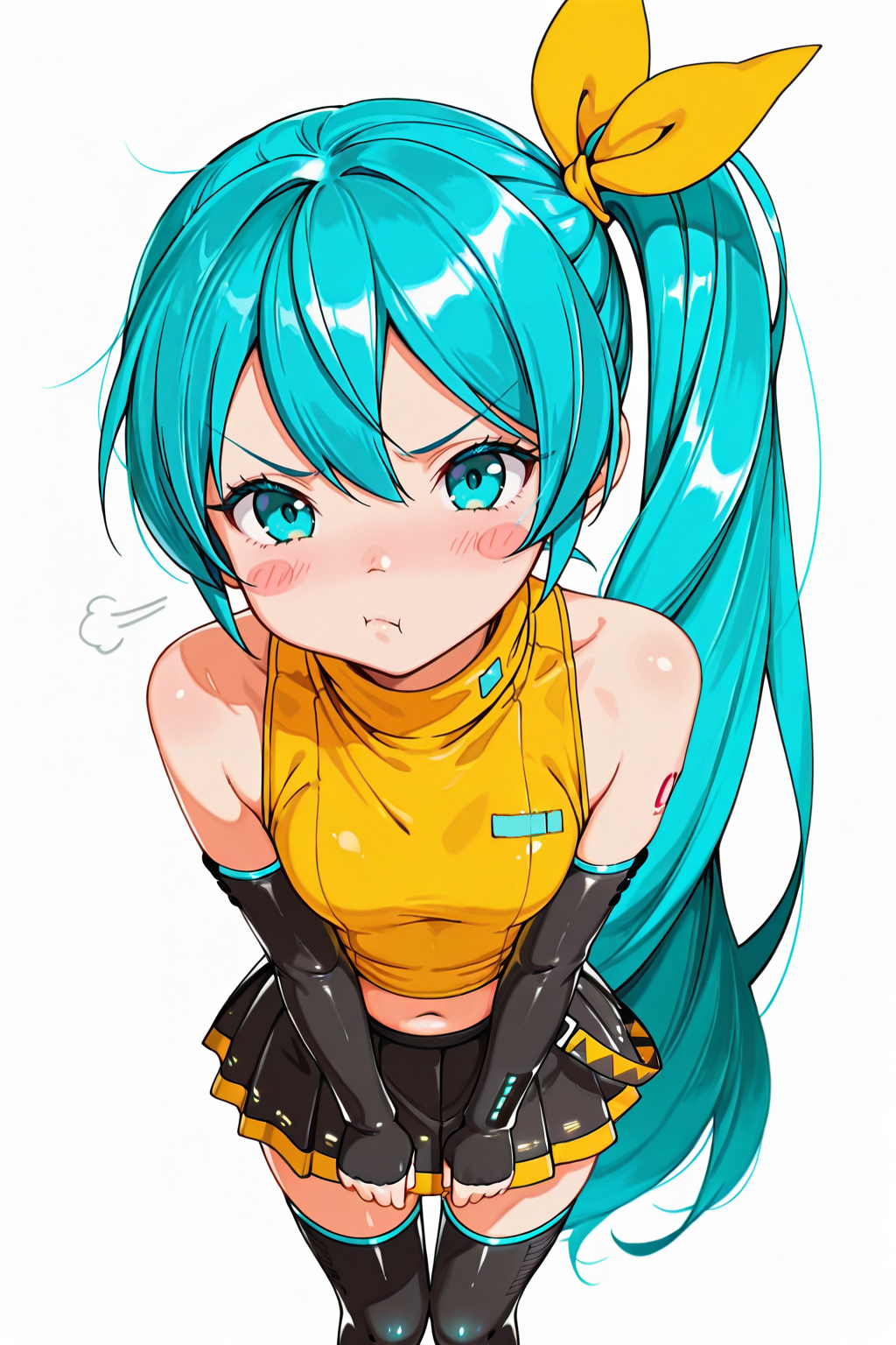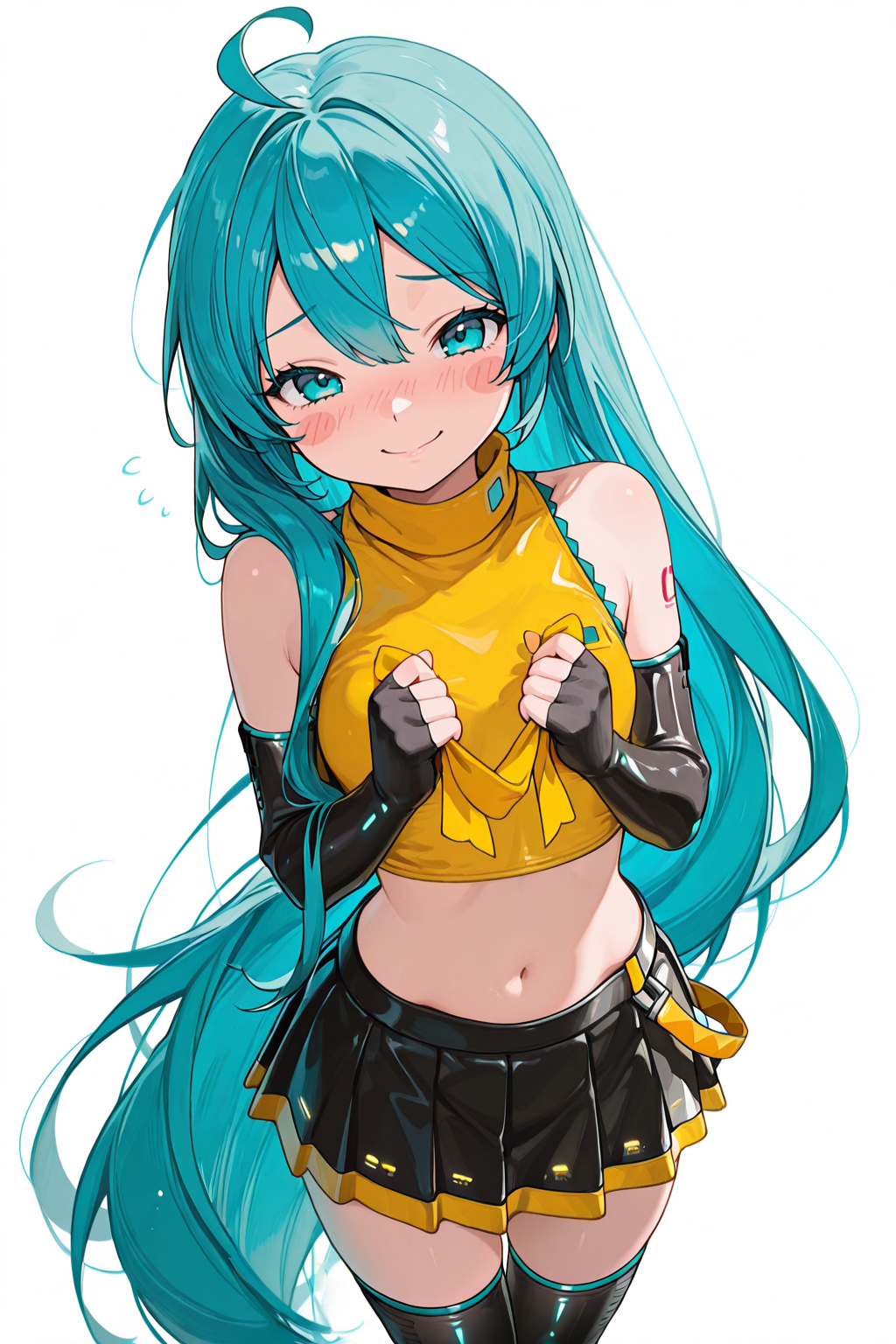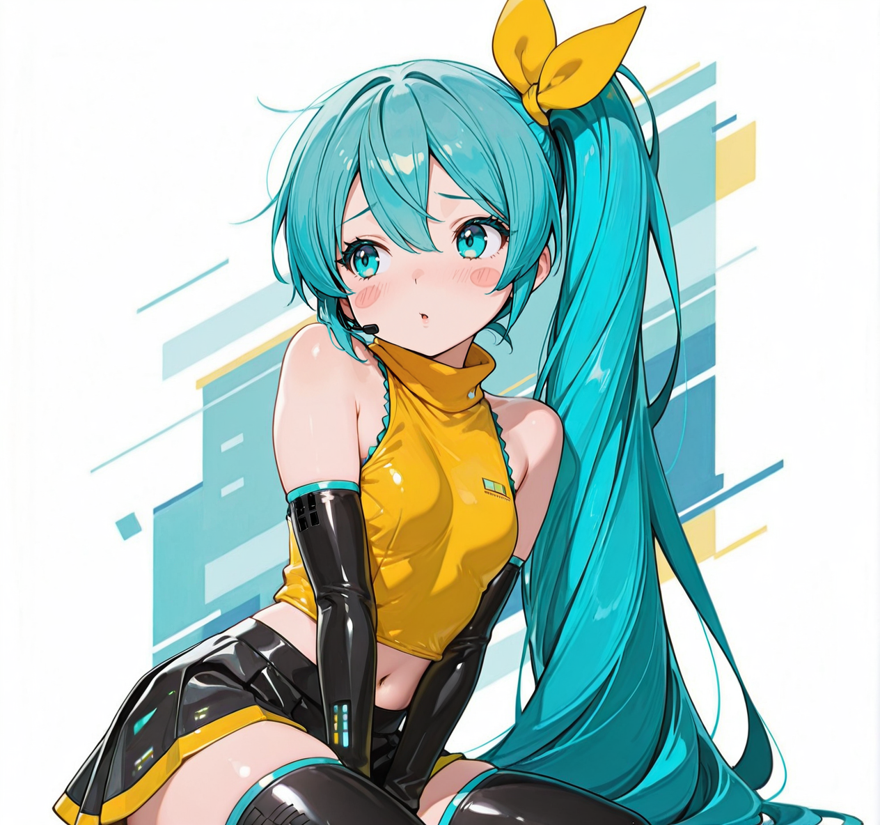 В общем натренировал Лору на желтым костюм Мику, используя сгенерированный с помощью Pixai нейрослоп датасет , но не очень доволен результатами, на чистой модели без дополнительных лор работает очень плохо.