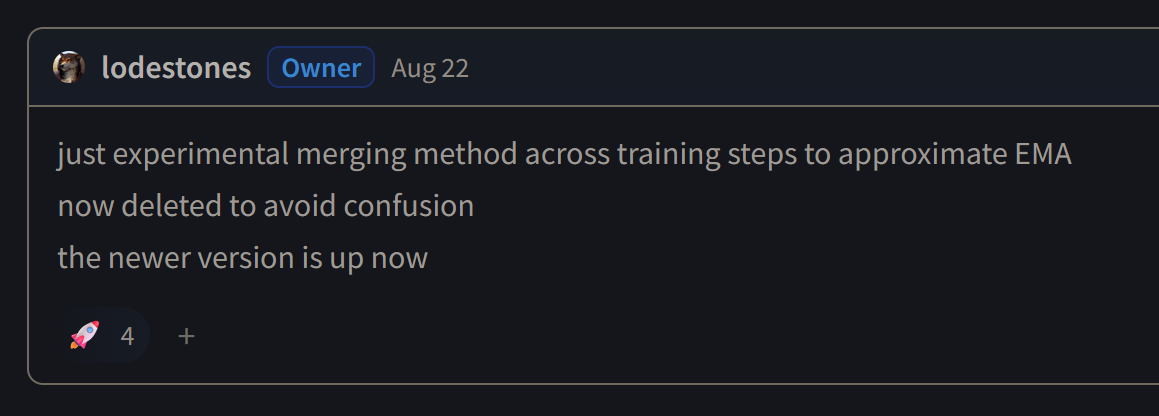 >>1397886 Мне кажется даже чего-то потенциально хорошего для тренировки там не будет. Там же мало того, что модель разломана, так ещё и VAE не 16-канальное. Для лор тогда уж лучше хрому взять.