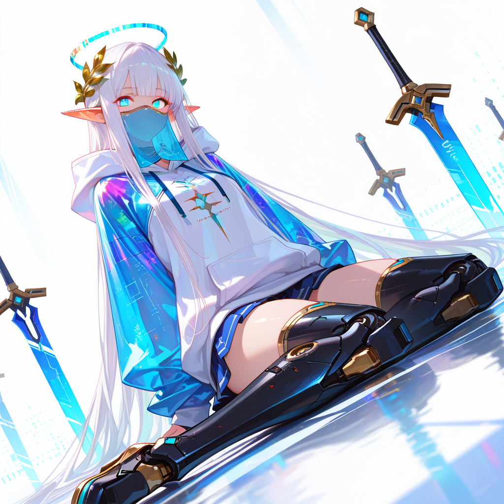 Уф, как же я заебался пытаться поставить в другую позу гарпию в специфичных панталонах. Во-первых, все облачные нейронки нахуй посылают при попытке перегенерировать персонажа, в чьём концепте нет обычных рук. Максимум, что я смог выжать - поменять стиль на более устраивающий меня. Во-вторых, приходится использовать zero-LoRA приём с догенерацией другой версии персонажа через инпэйнт на люстре, а она на фоне облака тупая как пробка.
