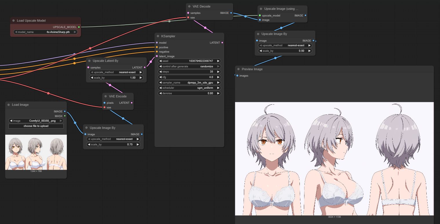 >>1402737 >Зачем ты латент апскейлишь Я это делаю потому что не могу использовать face detailer. Мне надо turnaround картинку получить, а детайлер тупо разные лица рисовать будет спереди и сбоку. Ну а заниматься импеинтом мелких деталей не люблю, вот поэтому решил с латент апскейлом помучиться.