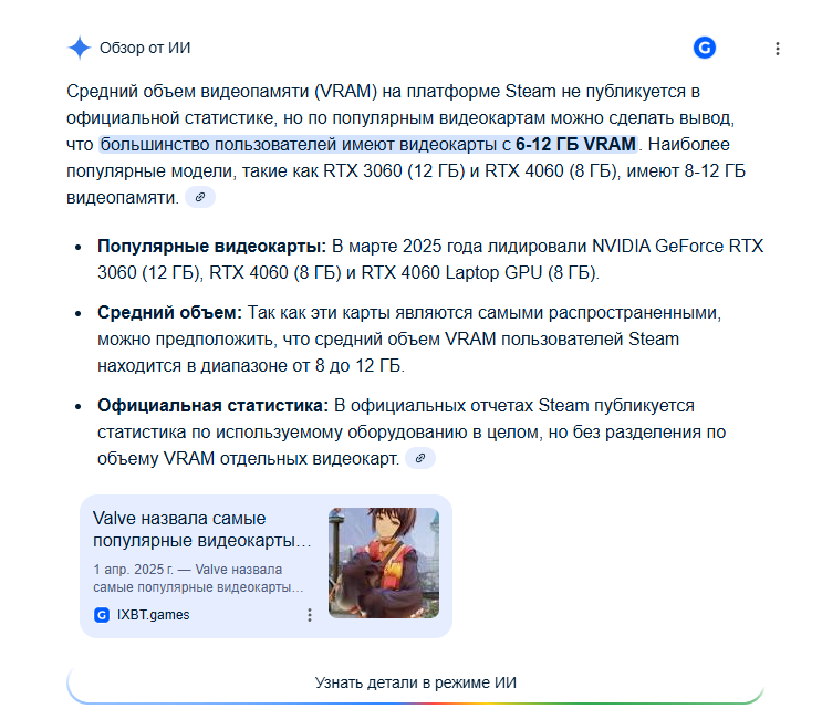 В идеале, хорошо было бы добавить, и взять 5060 с 16 гигами. Это сейчас чуть ли не лучшее решение для вкатунов - можно делать почти все, и при этом не продавать почку ради топовых видюх.