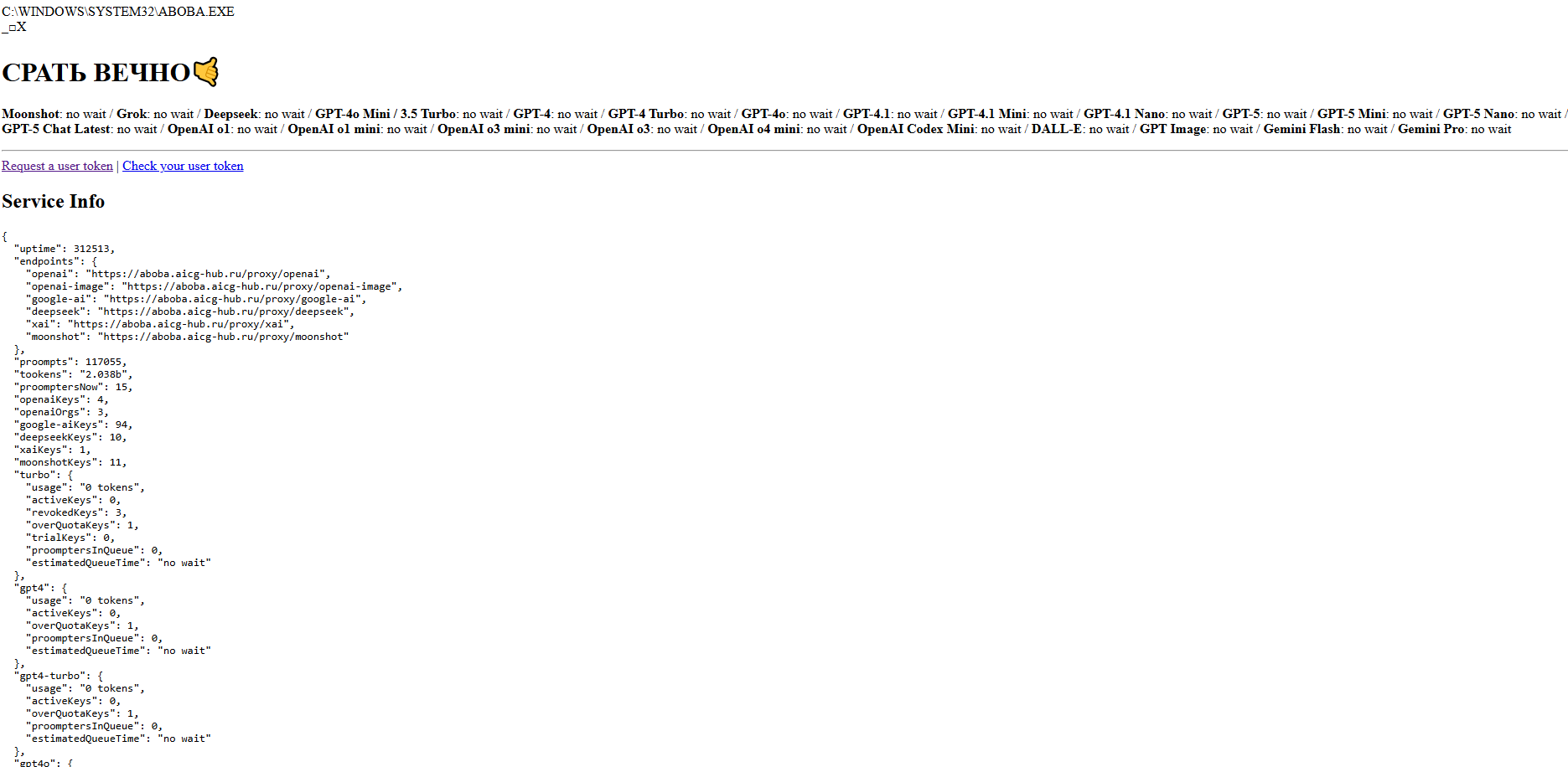 Вопрос, а откуда товарищи-аноны выкорчевали эту самую aboba и некую китайскую прокладку для взаимодействия с LLM? Типо, просто абсолютно не верится, что кто-то на добровольных началах будет делиться найденными ключами(утекшими или слитыми). Хотя с другой стороны, если что-то утекло, то на это сразу накинется стотыщпятсот ехидных китайцев и индусов, поэтому гейткипить токены особого смысла нет, ибо и так улетят.