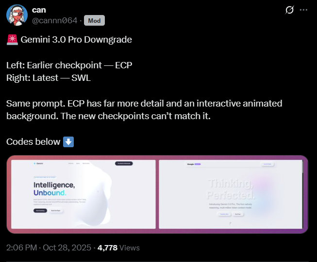 >>1401505 Этим пидорасам вообще никакой веры нет после того как они зажопили кингфол. Сука минимум полгода уже не релизят лучшую модель. Это ж надо быть такими пидорасами. Я понимаю что возможно кинфолыч дороже, ну можно же и продавать дороже как куктропики. Нет, не хотим, хотим чтобы холопы жрали ужатое 12б и совершенно похуй на поддержание иллюзии конкуренции. Больше гемини жрать не буду, ибо теперь ощущение от их сеток такое что доедаешь обьедки