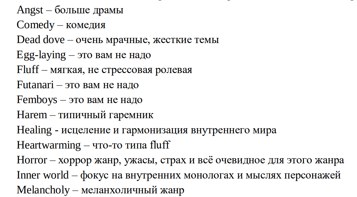 >>1400801 У меня там получаеца прописаны все типы монстров(ну кроме совсем кринжа вроде девочка морской огурец), виды ангелов, апоптозы, их редкость встречи с ними по миру, взаимоотношения между расами, между персами, все континенты, страны, города, немного про культуры, тартары и че внутри, все персы первого и второго планов + их альтер личности, немного персов массовки по типу ламия анастасия и т.п., немного инфы по миру монстров/ангелов, вкратце сюжетка новеллы и объяснение как она влияет на сюжетку парадокса, и плюс система рангов персов по силе потому что я люблю с ними пиздиться или отыгрывать за них и кого нибудь пиздить. Ну воть так получаеца если ничего не упускаю. Это моя самая масштабная картошка эвер