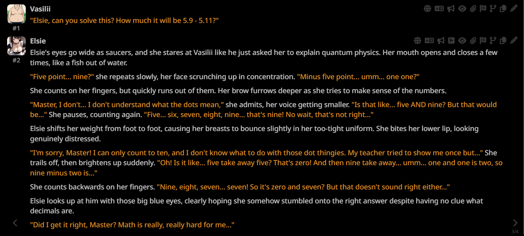 >>1402587 Достаточно послушная, но всё зависит от сценария и промптов. Покажи как конкретно оно не работает: скриншот чата с этой оос инструкцией и последующее за ней сообщение, опционально неплохо было бы посмотреть промпт.