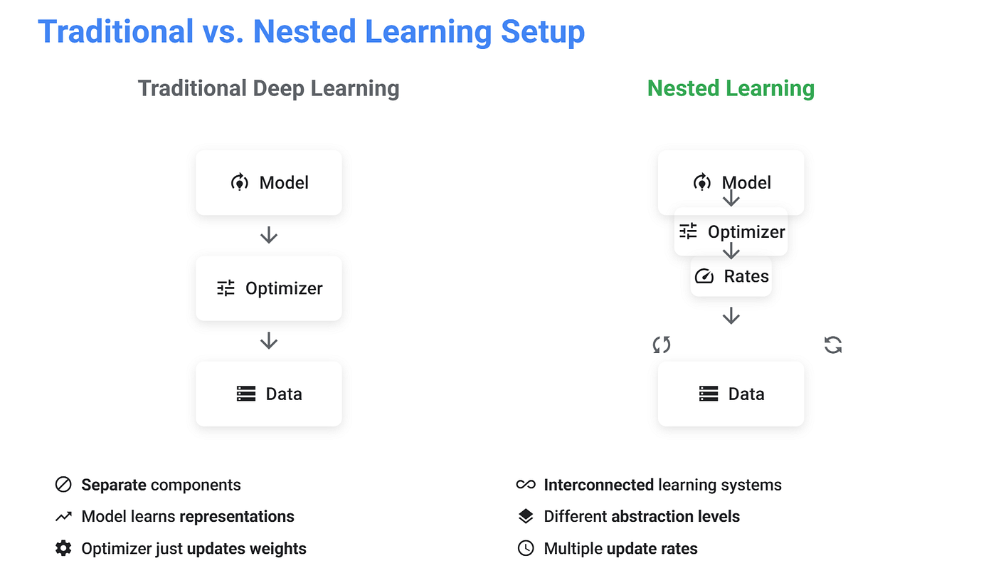 > Обучение происходит через внешнюю обратную связь, а не через внутреннюю «хирургию мозга». Именно поэтому обучение с подкреплением (RL) и огромные объёмы данных — ключ к прогрессу, а не «самооптимизация».