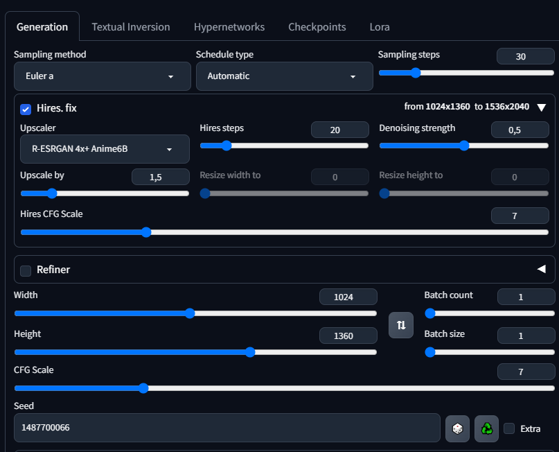 >>1405341 Сорян если вопрос тупой - но где вкладка на хайрез в Img2img? Рефайнер есть. Сейчас делаю хайрез через R-ESRGAN 4x+ Anime6B в txt2img. Я конечно могу просто поставить в Img2img resize 1,5 и количество шагов, но где выбрать саму модель R-ESRGAN 4x+ Anime6B?