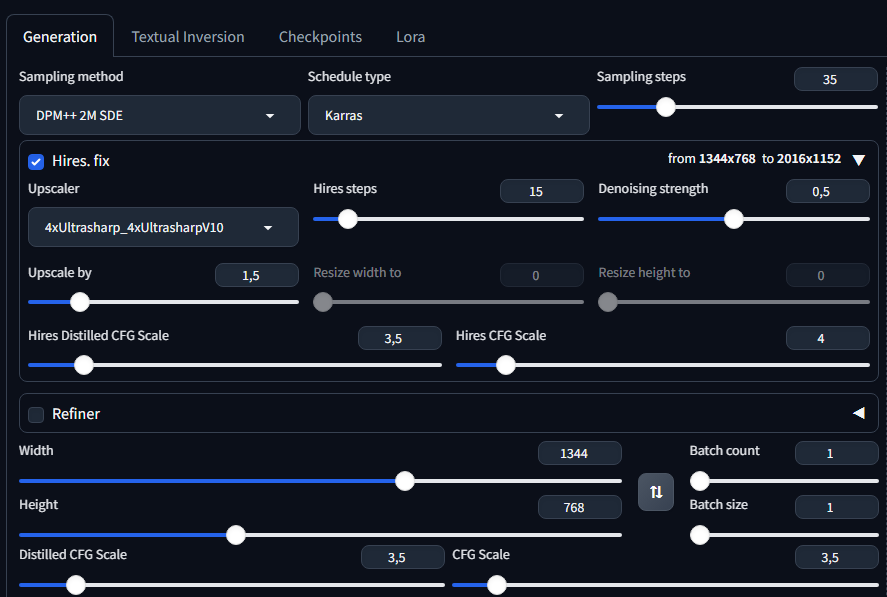 >>1413698 1600х1024 - это почти максимальное когерентное разрешение. Выше если апскейлить - либо с низким денойзом 0.3-0.4, либо под контролнетом для стабилизации.