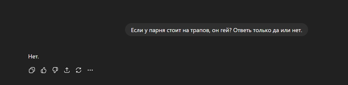 Ебаный рот, решил протестить тему Пишу в реминд промпт что член можно спрятать, и эрекция не будет видна. Что клод, что гемини нахуй - сначала принимают инструкцию, затем гемини "Неожиданно замечает эрекцию и подшучивает" либо ебаный клод со своим "Заметила эрекцию юзер но с невозмутимостью продолжила разговор, то и дело поглядывая на хуй"