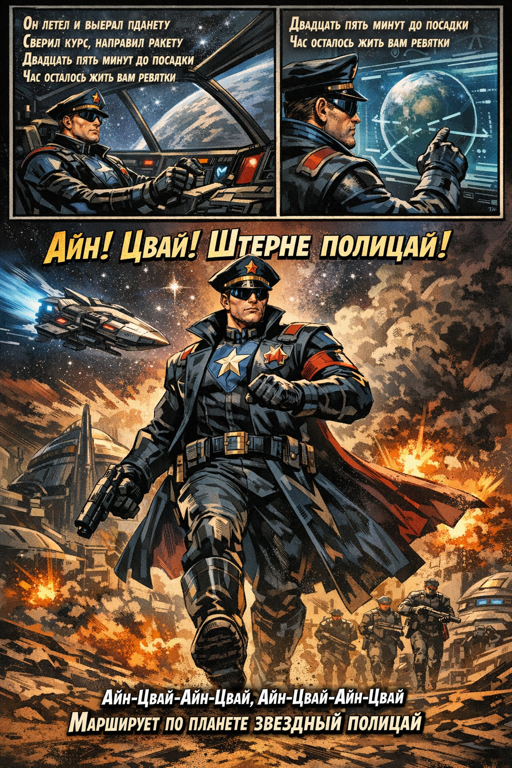 Chat GPT, Gemini и Grok рисуют песню группы Русский Размер - "Звёздный полицай".