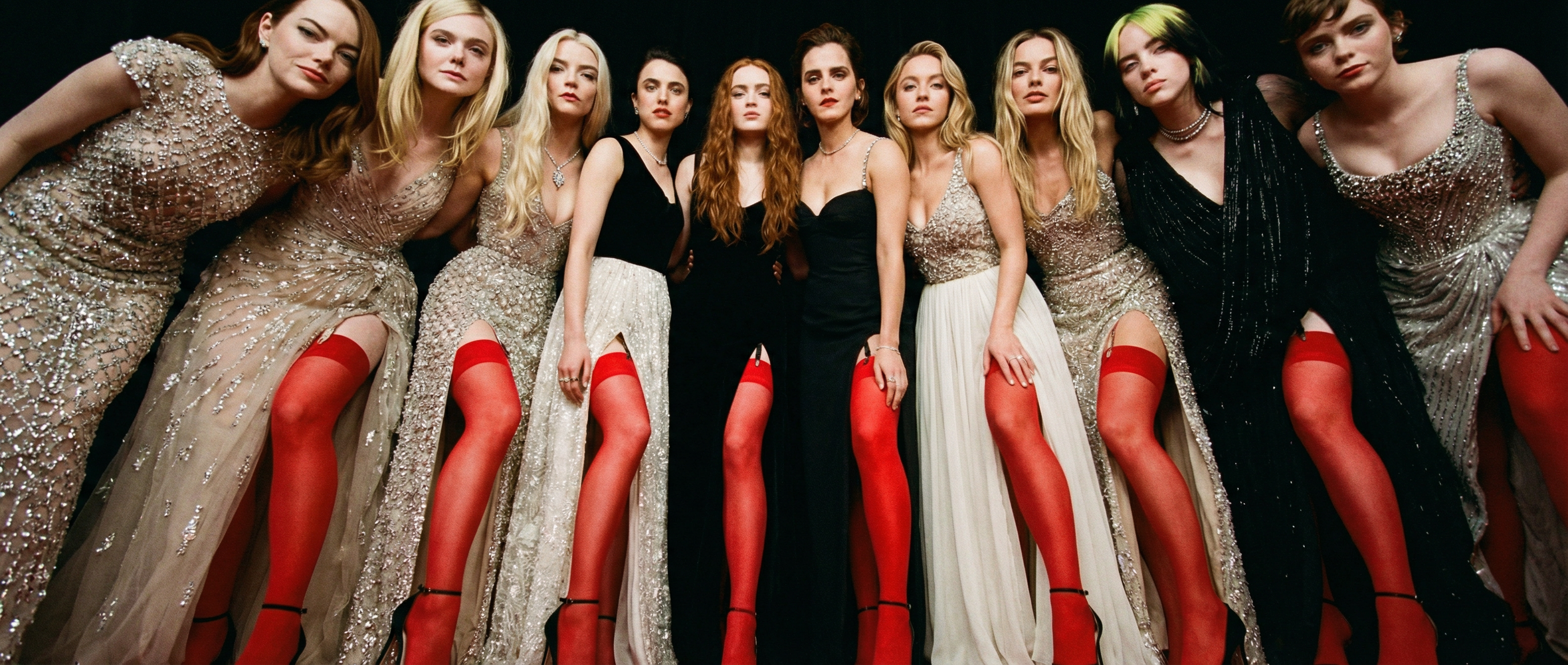 Subject: Вид снизу очень близко. Белый светящийся бриллиантовый текст рукописным шрифтом 19 века снизу "Чypкa." Лица двух нордических красивых девушек моделей Emma Stone и Elle Fanning смотрят вниз. Преувеличенная анатомия лиц.