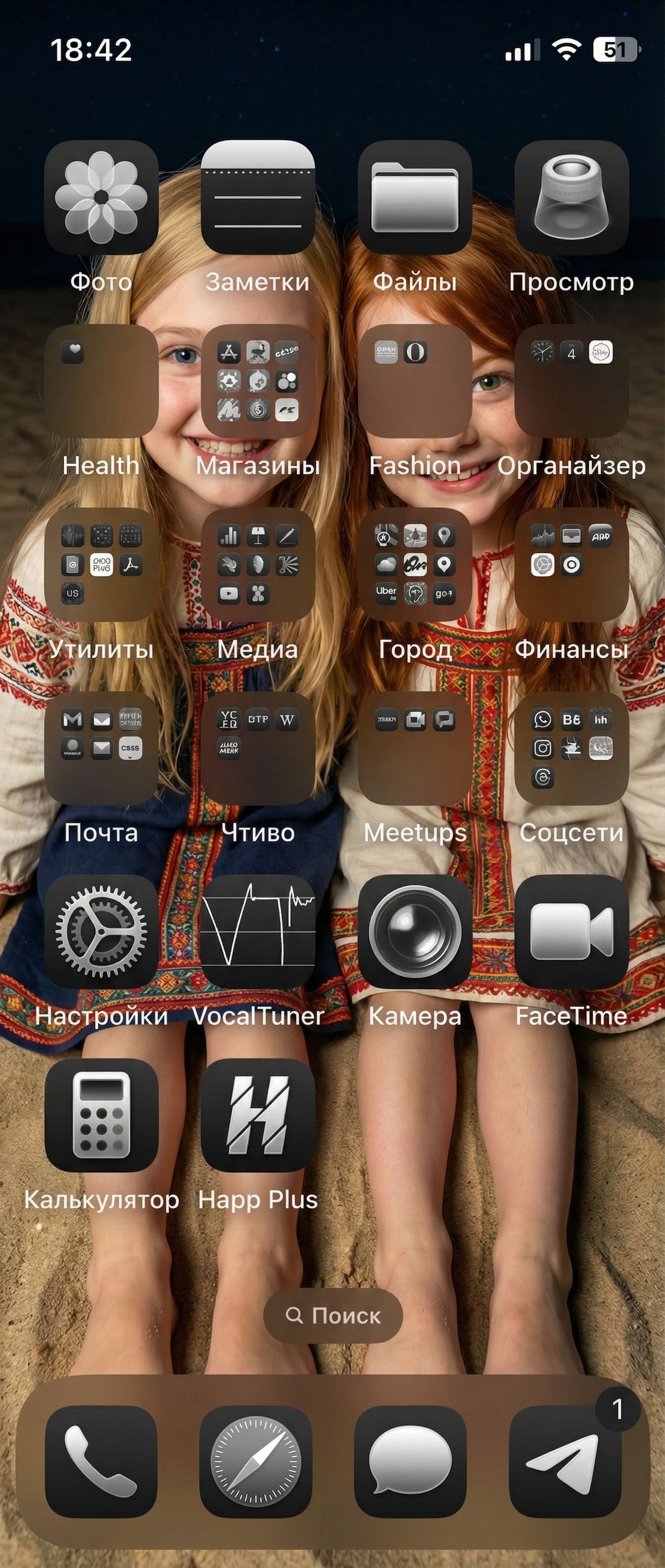 Соотношение сторон 9:21, используй первое изображение как фон для интерфейса со второго изображения, удали оранжевое, измени время сверху на интерфейсе на "18:42", сохрани высокую детальность второго фото, сверху справа батарея с числом 51