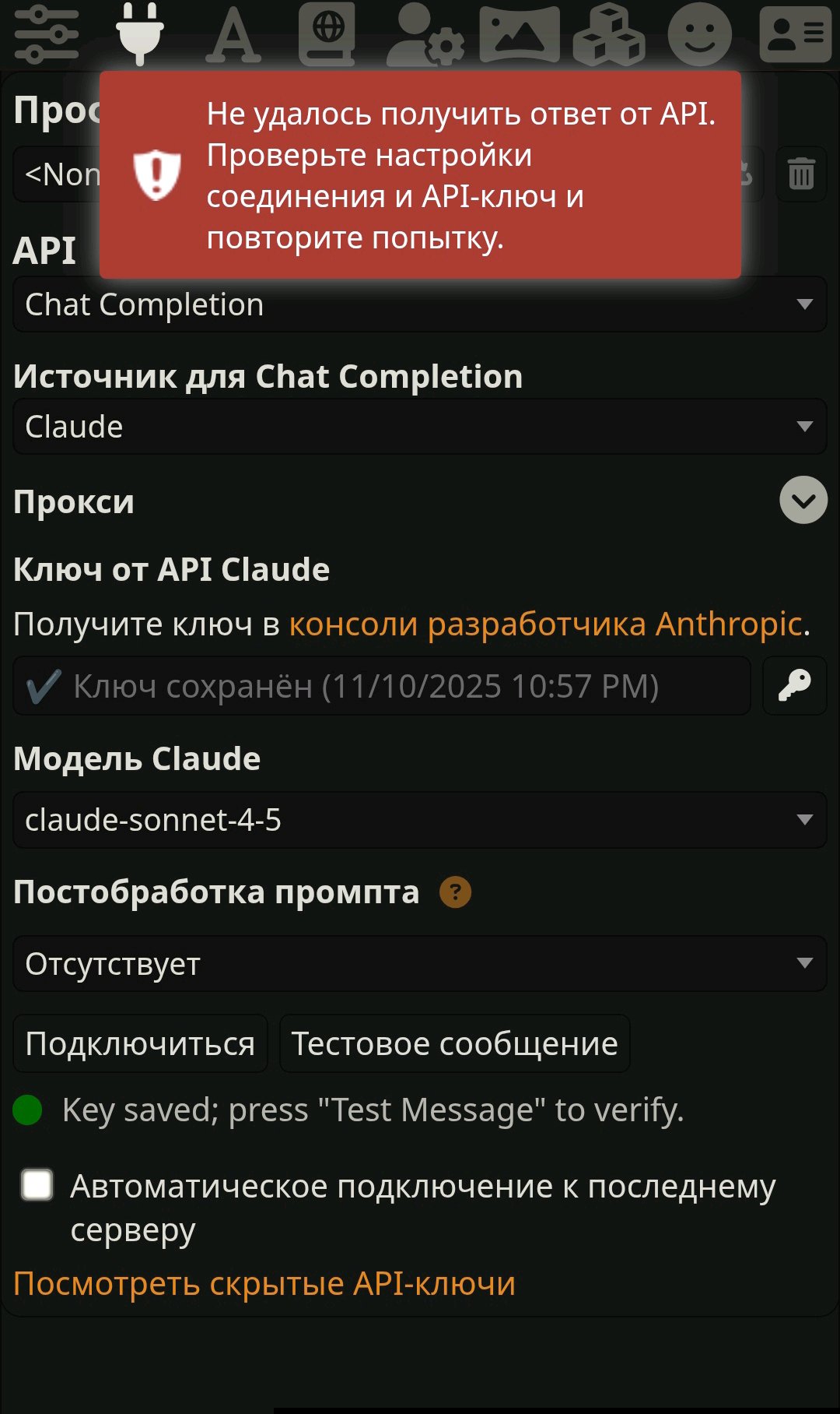 кто-нибудь юзает клод 4.5 в таверне через гитхаб? у меня проблема что модель периодически не выдает ответ - либо пустышка, либо 1 предложение в стиле "Вот рп на русском!" или кусок начала рп думала ценз, но это срабатывает даже на сфв в консоли пишет чисто finish reason: stop и ничего больше говно в том, что на эти пустышки уходят премиум риквесты 4 клод и ныне удаленный 3.7 (помянем) такого не выдают после добавления макс респонс токенс до 12к такого стало меньше, но не решило до конца проблему это точно проблема в гитхабе, так как юзала клевдр и 4.5 вел себя адекватно юзала бы дальше клевдр но там рисок бана пиздец, два акка снесли