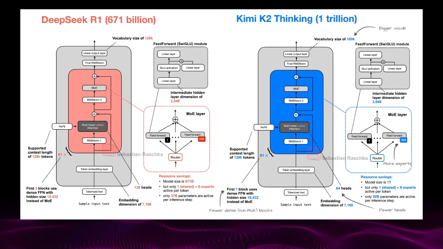 Это смесь экспертов (*mixture of experts*), всего 1 триллион параметров, но активны лишь около 32 миллиардов в каждый конкретный момент.