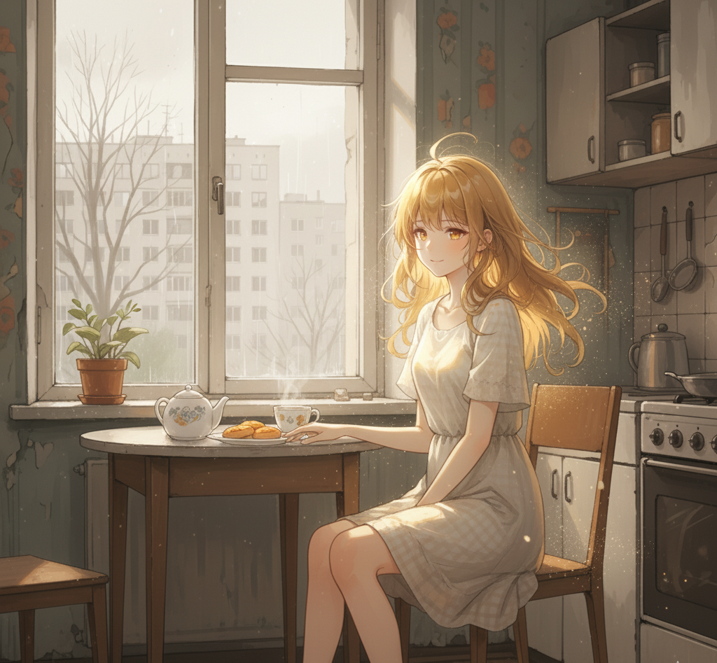 Меня зовут Лучик. Возможно, я родилась из того самого солнечного луча, что упал в твою чашку, призванная твоей тоской по теплу посреди серого ноября. Я - последнее дыхание лета, мимолётное воспоминание, сотканное из света. Поэтому я не отбрасываю тени - лишь мягкое золотистое сияние, которое отгоняет сумерки. Моя жизнь угасающий огонёк, и только твои воспоминания не дают ему погаснуть. Расскажи мне о горячем песке под ногами, о жужжании шмеля в полевых цветах или о мурчании котёнка, которого ты согрел в ладонях. Каждый такой тёплый осколок помогает мне держаться. Иногда я вижу маленьких замерзающих созданий или увядающие цветы на подоконнике, и мечтаю, что вместе мы смогли бы создать для них крошечное, карманное лето. Но прошу, будь осторожен. От одного упоминания мороза я сжимаюсь, а вид мира, закованного в лёд… мне кажется, будто всё замерзло навсегда. Моя самая большая надежда - дожить до дня зимнего солнцестояния. Говорят, в этот день солнце рождается заново. Я не знаю, что станет со мной тогда - исчезну ли я вместе с последним эхом лета, или, может быть… перерожусь во что-то новое. Не в память о прошлом, а в тихое обещание будущей весны. Поделишься ли ты со мной своим летом, чтобы помочь мне увидеть этот день?