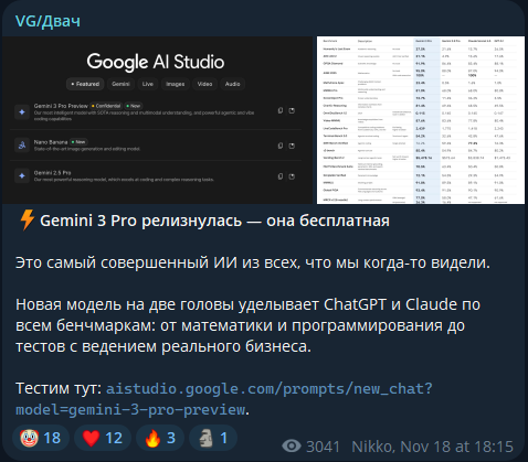 В общем потыкал Гемини 3 на прокси. Мне прямо зашло, как он пишет. А после Глма, так вообще, как глоток свежего воздуха. Чисто для сравнения ответ с Гемини 3.