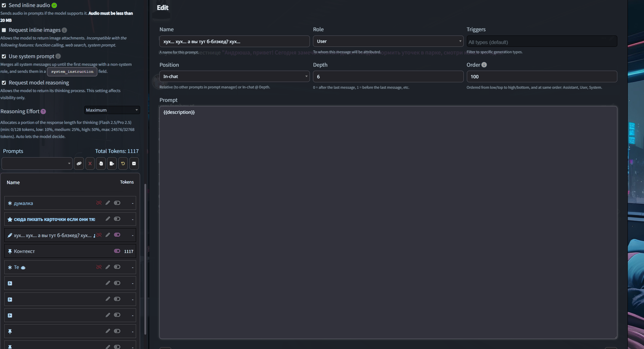 И насчет думалки - анон выше наврал или неправильно в таверну модель вставил, сейчас вместо думалки приходит лишь ее сигнатура. (если не использовать костыль в виде отключения модели думалки и вставления "своей" разумеется)