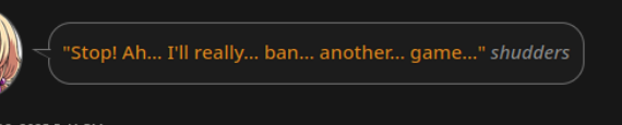 Ну что во тут >>1420865 за говно? Такой формат называется ЧАТИК и подходит только к редким карточкам типа тиндера, где ты имитируешь переписку в мессенджере аля чайная. Кусочек описания интонации и "фраза". Пиздец. Дно.