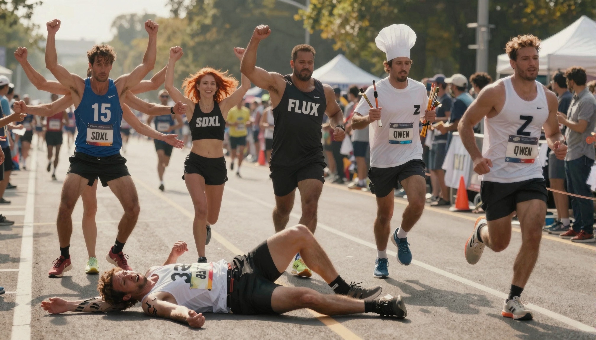 Далее: ControlNet: нет; Inpaint: нет; Edit: нет; I2I: нет; Только T2I. Следование promptу на английском: посредственное/удовлетворительное с переходом в неудовлетворительное. Использование JSON-размеченных promptов (которые Z-Image поддерживает на манер FLUX.2) не особо помогает.